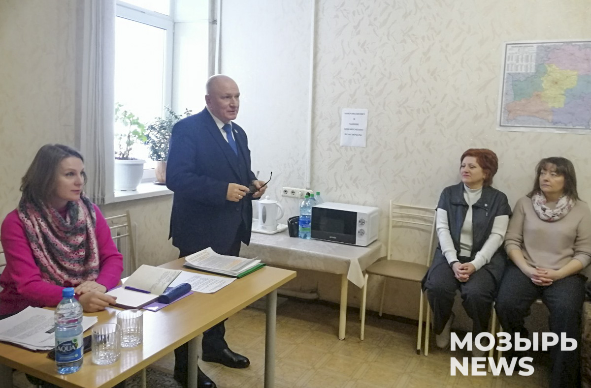 С жильцами микрорайона также встретились заместитель председателя районного Совета депутатов Василий Бернацкий, начальник управления по труду, занятости и социальной защите Мозырского райисполкома Михаил Пашинский, главный врач Мозырского городского родильного дома Наталья Муравьёва, заведующая женской консультацией Ирина Сидоренко, которые также взяли на заметку вопросы, касающиеся их компетенции.