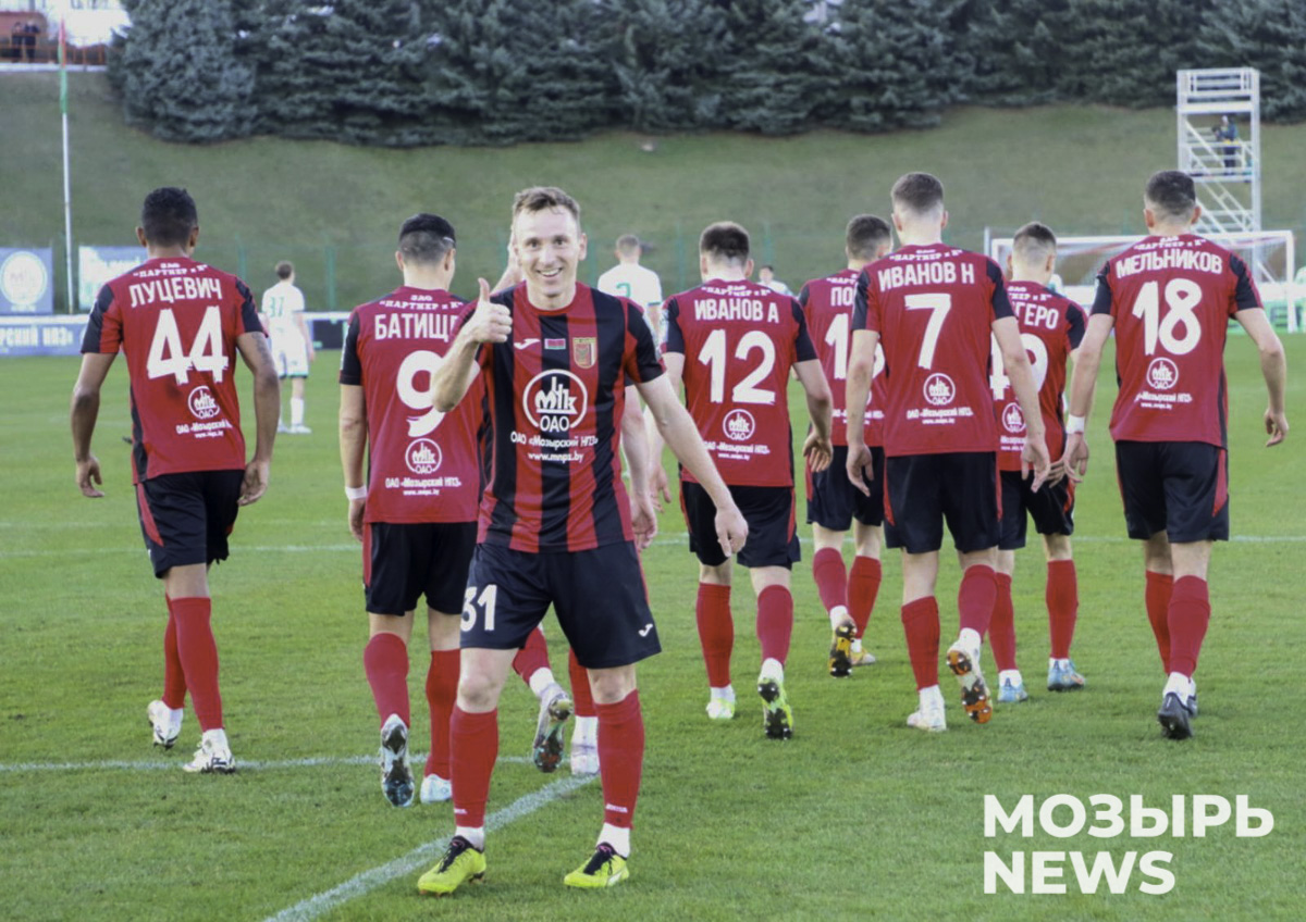 Вскоре хозяева смогли вновь поразить ворота соперника. На 38-й минуте Соловей убежал в контратаку и отпасовал налево набегающему Полозу. Воспитанник мозырского футбола не промахнулся, открыв счёт своим голам — 2:0. Не прошло и пяти минут, как во второй раз поздравления партнёров принимал Соловей. Получив пас от Кухарчика, Андрей хладнокровно распорядился мячом, отправив его в сетку ворот гостей — 3:0.