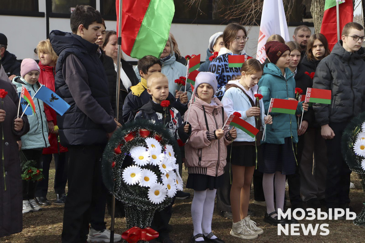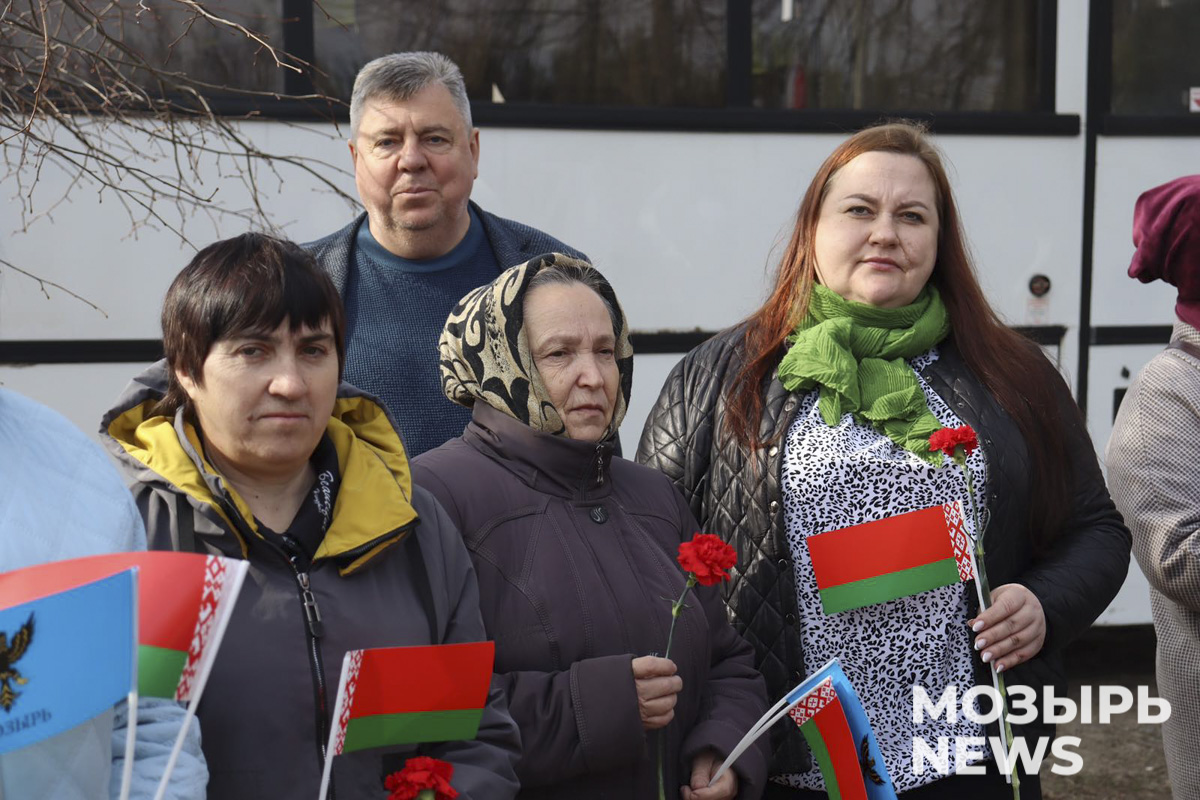 Митинг-реквием собрал десятки мозырян – представителей трудовых коллективов, общественных организаций, молодёжи, школьников и жителей сельского Совета.