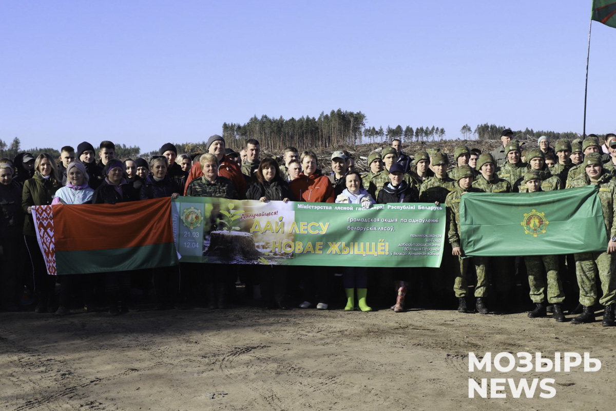 Сегодня к республиканской акции «Дай лесу новае жыццё!» присоединились работники райисполкома, представители Мозырского пограничного отряда, районного отдела Следственного комитета, центра банковских услуг № 306 ОАО «Белинвестбанк» и Мозырского опытного лесхоза — всего порядка 150 добровольцев.