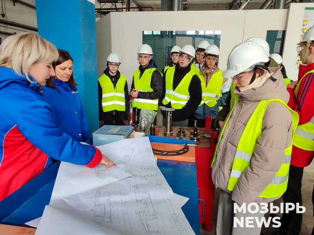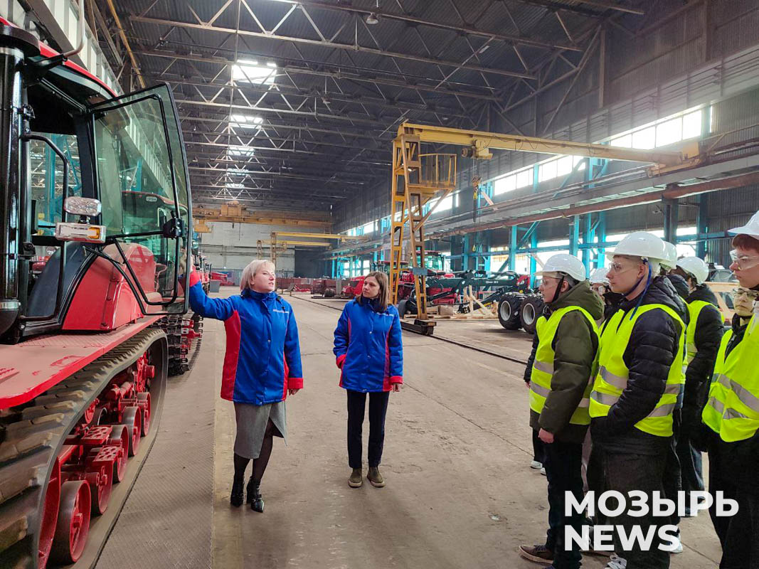 Встреча началась с обязательного инструктажа по охране труда: школьникам разъяснили правила поведения на производстве и выдали средства индивидуальной защиты. Далее заместитель директора по производству и качеству продукции Ирина Мертин познакомила ребят с историей предприятия и особенностями его функционирования сегодня. Ирина Васильевна отметила, что совместно с «МТЗ-ХОЛДИНГ» ОАО «Мозырский машиностроительный завод» производит гусеничные тракторы, а также модернизированную технику на базе тракторов «BELARUS»: машины рубильные, погрузчики фронтальные, тракторы лесохозяйственные, машины лесные погрузочно-транспортные, подъемники монтажные специальные, косилки дорожные и другую технику. Модельный ряд выпускаемых машин растет с каждым годом.