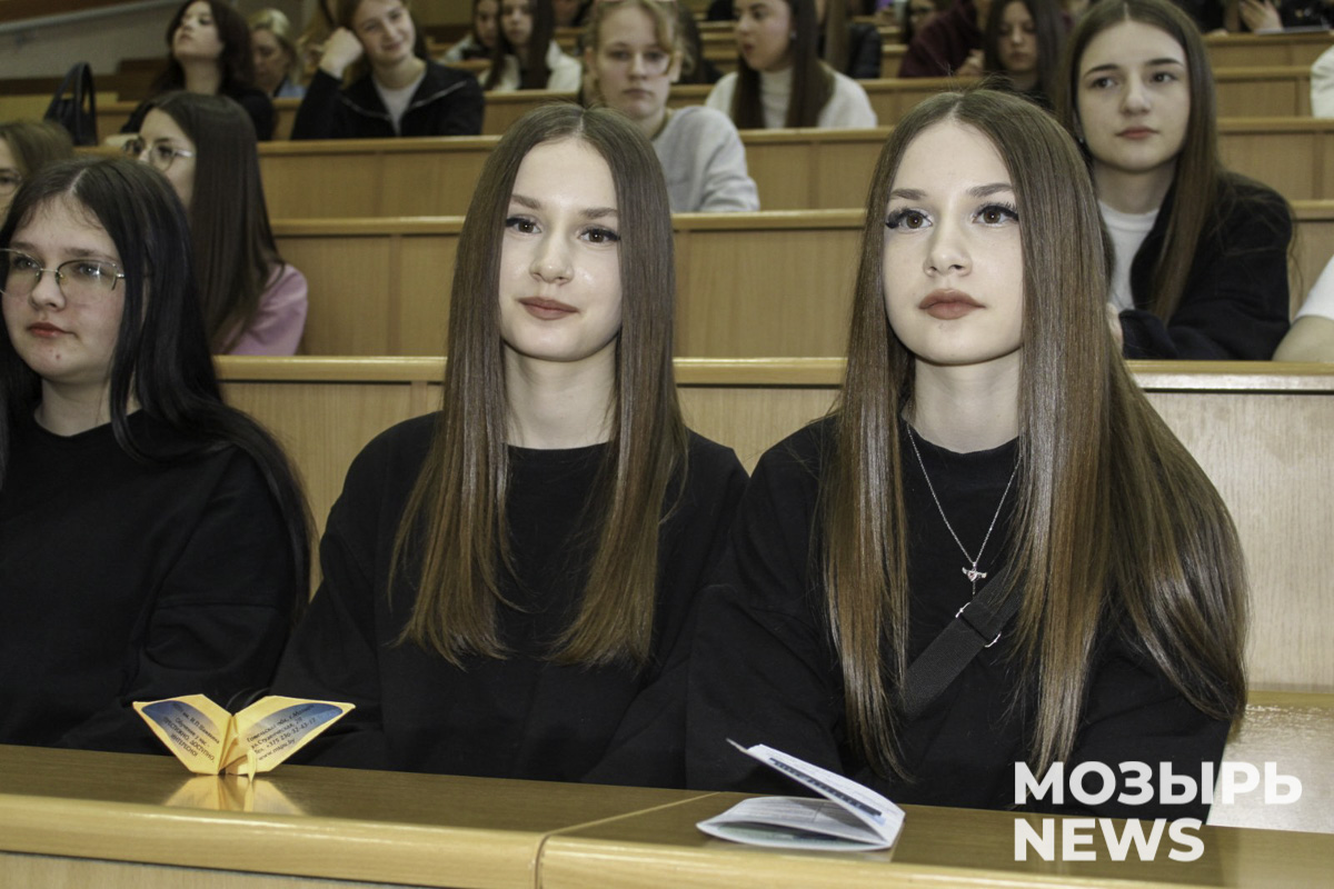 Сестры Анастасия и Анна Салтан: «Мы приехали из Петрикова, чтобы поближе познакомиться с мозырским вузом. Профессия педагога интересна — открываются новые перспективы. Мы ещё не определились окончательно с выбором. Любимый предмет в школе — обществоведение. Университет нам понравился: достойные условия проживания для студентов и много интересной информации о преимуществах трудоустройства после окончания вуза. Однозначно будет о чём обсудить дома с родителями за круглым столом».