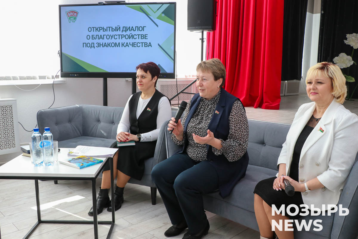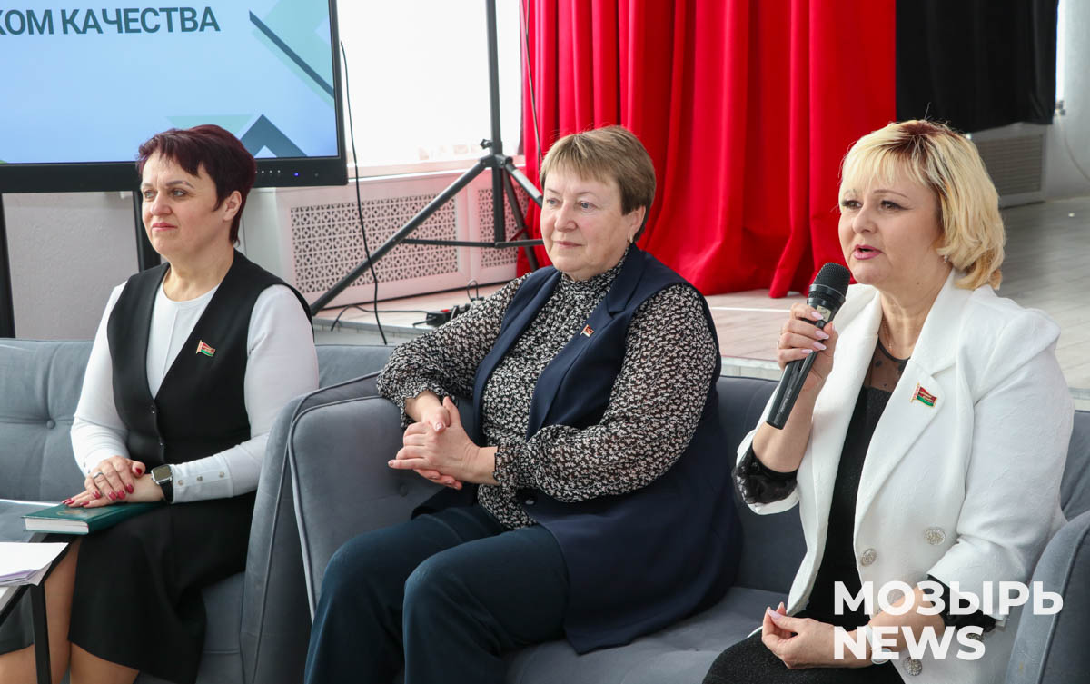 Далее Вероника Игоревна представила участникам диалога экспертов: председателя Мозырского районного Совета депутатов Галину Кудину, депутатов Палаты представителей Национального собрания Республики Беларусь Оксану Ковалькову и Аллу Науменко, а также директора центра творчества детей и молодежи Оксану Козаченко.