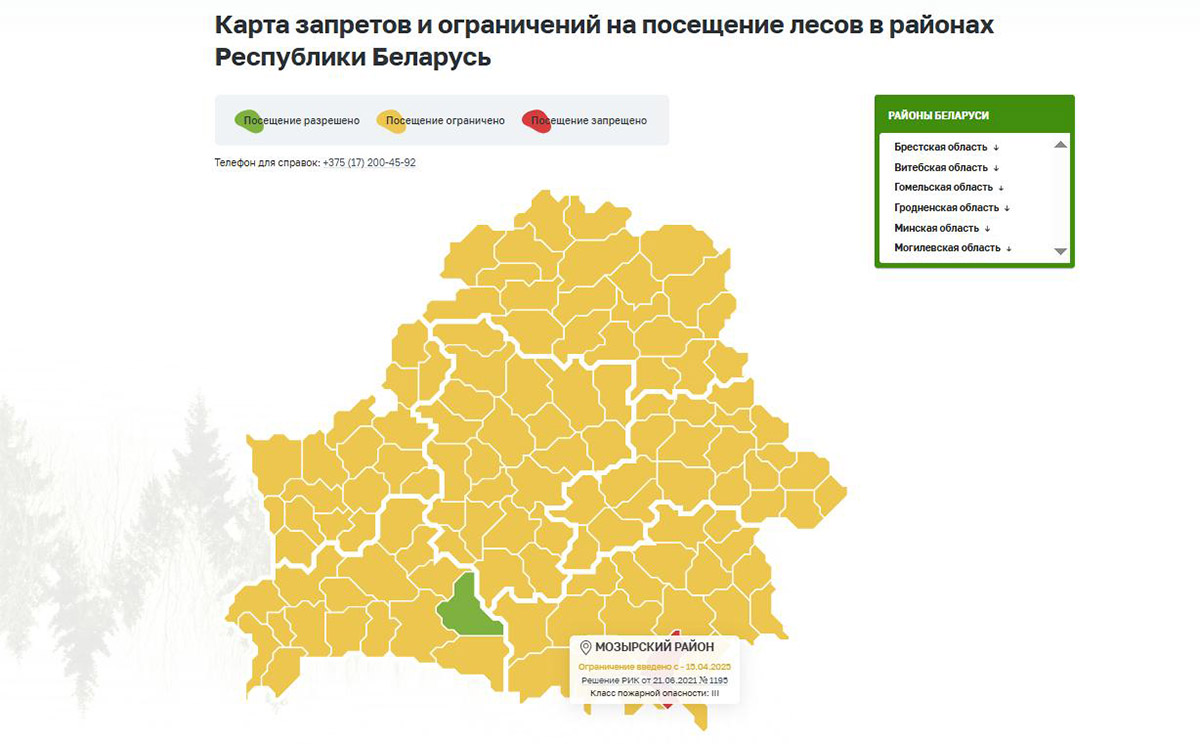 В случае обнаружения возгорания в лесу или вблизи лесного фонда Мозырского района незамедлительно звонить по телефону: 24-71-21 — дежурный по пожарам или по универсальному номеру 101. Сбережем лес вместе!