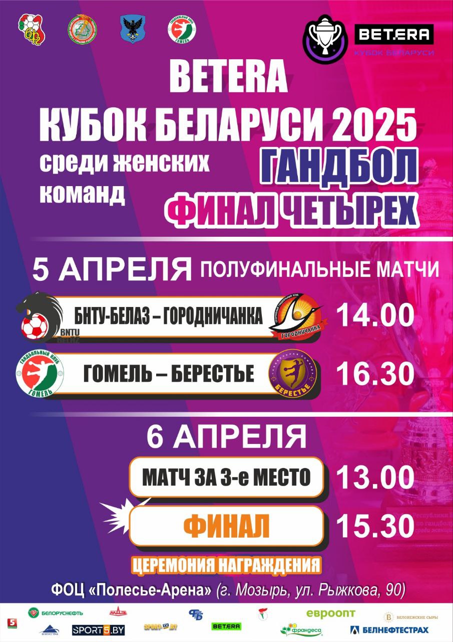 Новости Мозыря 5-6 апреля в Мозыре пройдет Кубок Беларуси по гандболу среди женских команд 1 апреля, 2025 123 Приглашаем насладиться захватывающей атмосферой спорта!