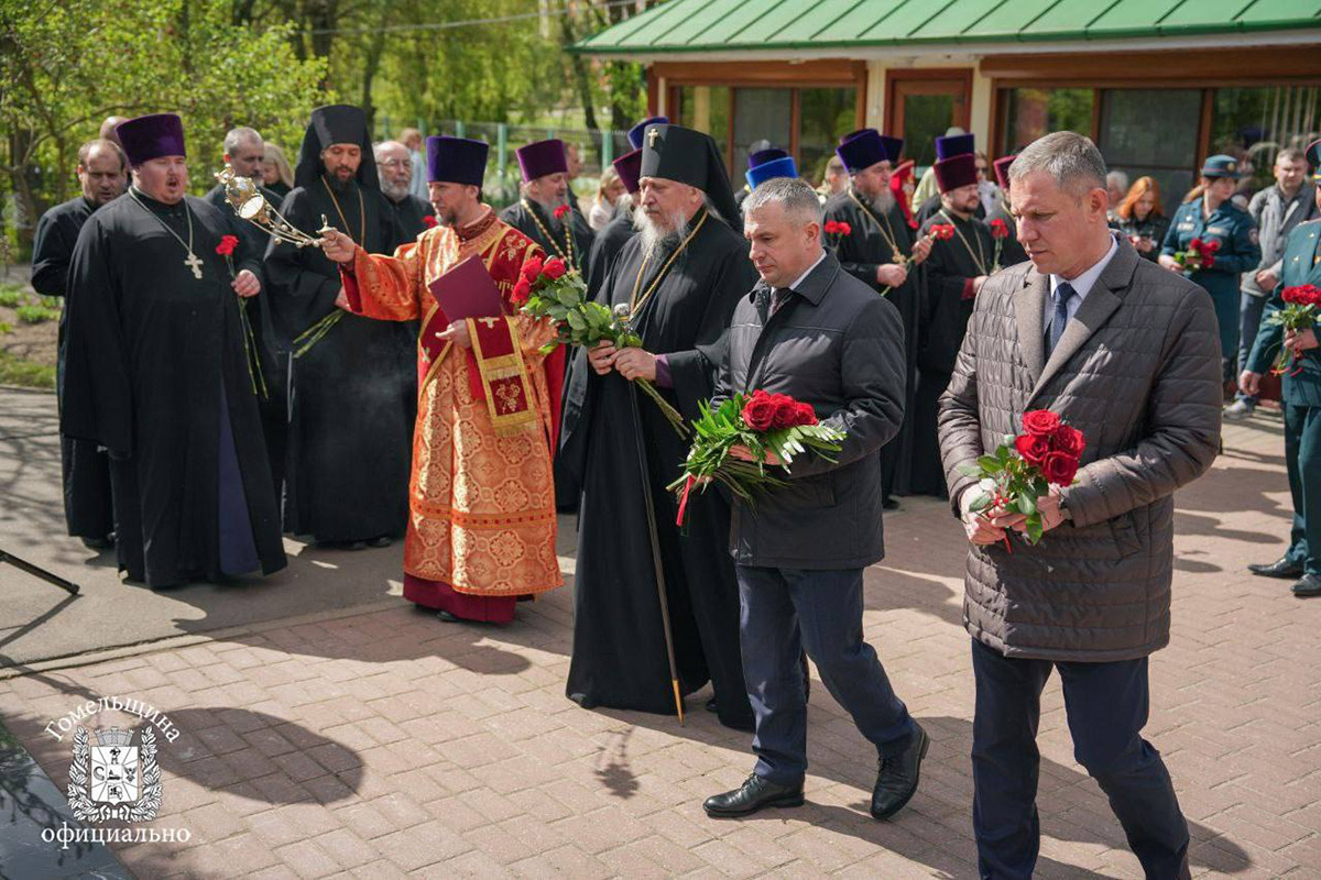 Память о ликвидаторах и погибших в результате аварии почтили минутой молчания, к памятному знаку на территории храма возложили цветы.