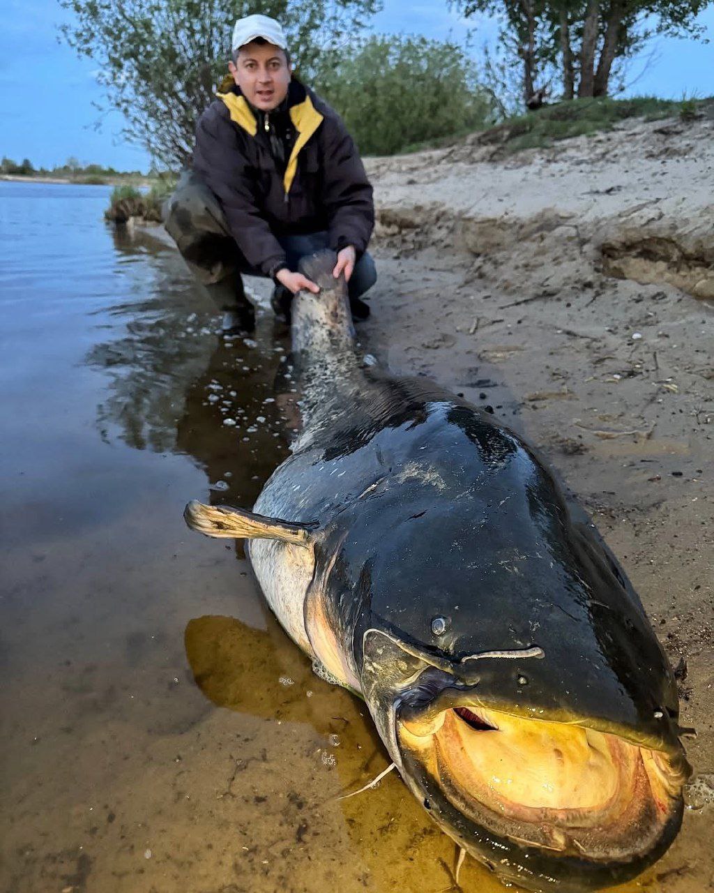 «26 апреля рыбачили с кумом на Припяти в окрестностях Мозырского района. Поклевка случилась около восьми часов вечера и сразу стало понятно, что на крючке сидит крупный сом. Вываживание длилось минут тридцать, и на протяжении всего этого времени рыба не поддавалась, пытаясь уйти в глубину. Сдался сом лишь совсем обессилевши и глотнув воздуха, после чего я смог подтянуть его к берегу, а кум только с третьей попытки вытянул гиганта из воды», – рассказал Федор.