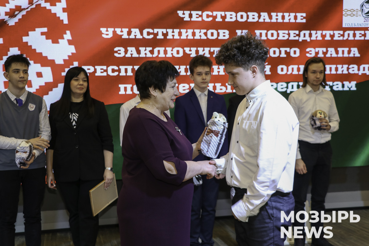 Благодарственные письма были вручены директору гимназии им. Янки Купалы Михаилу Ранчинскому, директору СШ № 9 Ольге Хомутовской, директору СШ № 13 Марине Капниной, директору СШ № 14 Елене Прибыщук, директору СШ № 15 им. генерала Бородунова Е. С. Сергею Трояну, директору СШ № 16 Анастасии Саламаха, директору Центра юных пожарных Александру Боровику.Памятные талисманы получили: победитель заключительного этапа республиканской олимпиады по учебному предмету «Английский язык» Ярослав Паршин (СШ № 14); победители по учебному предмету «Математика» Егор Буйневич (гимназия), Матвей Андриалович (СШ № 9), Андрей Кравченко (СШ № 13) и Максим Москвин (СШ № 15); участник и призер заключительного этапа по учебному предмету «Физика» Илья Беляк (СШ № 14); участники и призеры по учебному предмету «Информатика» – воспитанники Центра юных пожарных Николай Гурин, Андрей Коробко, Иван Кошман, Алексей Сузько и Кирилл Клевцевич; участники и победители по учебному предмету «Химия» – Петр Лагутенко (СШ № 9), Владислав Головач, Кирилл Шаладонов и Валерия Гуд (оба – СШ № 16); участники и призеры по учебному предмету «Биология» Александра Позняк (СШ № 14), Арина Колос и Арсений Коноплич ( оба – СШ № 16).