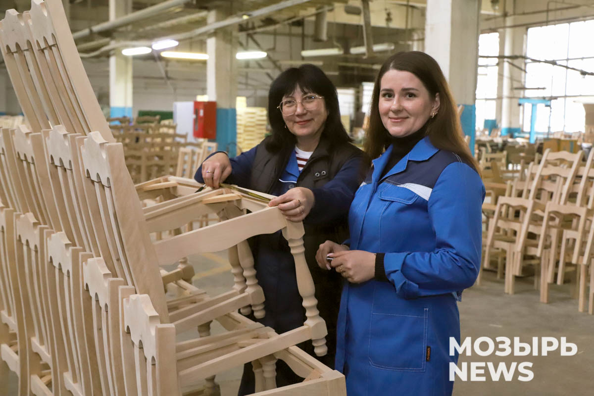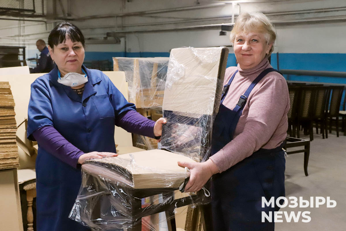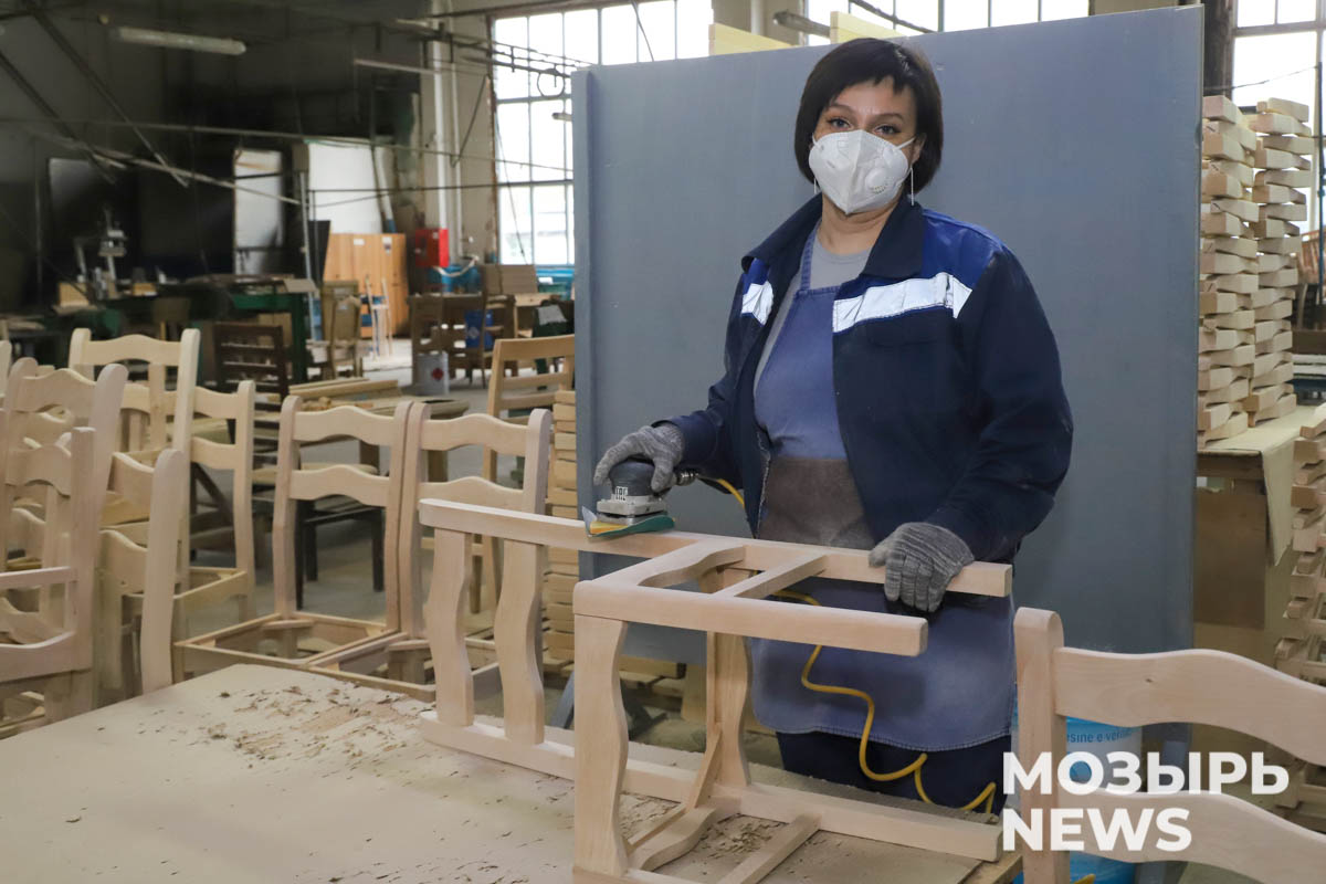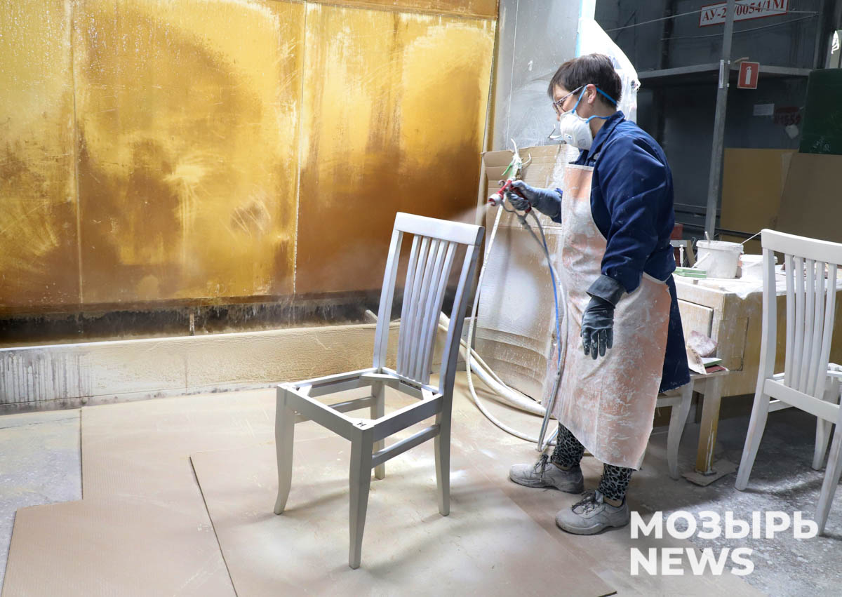 Начальник фабрики Николай Зализинский приводит цифры: ежемесячно работники предприятия производят около 4-х тысяч стульев. Как предмет для гордости: при изготовлении мебели используют натуральную древесину ценных пород и только экологически чистые лаки и красители.