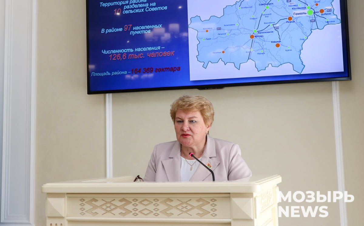 В пленарной части мероприятия Елена Павлечко рассказала о структуре района, деятельности предприятий и организаций Мозырщины, достижениях мозырян, работе по благоустройству земель и территорий.
