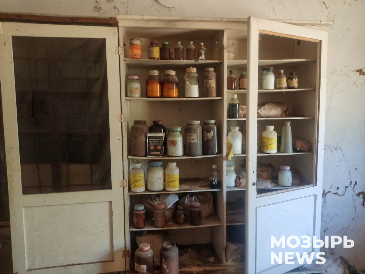 Снаружи оно больше похоже на жилой дом. А внутри – длинный коридор и открытые двери врачебных кабинетов, где до сих пор стоит стоматологическое кресло, люлька для взвешивания младенцев и отдельные кабинки процедурного кабинета. Очень пыльно. Под ногами гнилые доски пола – местами страшно ступать. И наверх невольно поглядываешь, чтобы балки не обвалились. Чуть подальше – здание аптеки. Тоже деревянное.