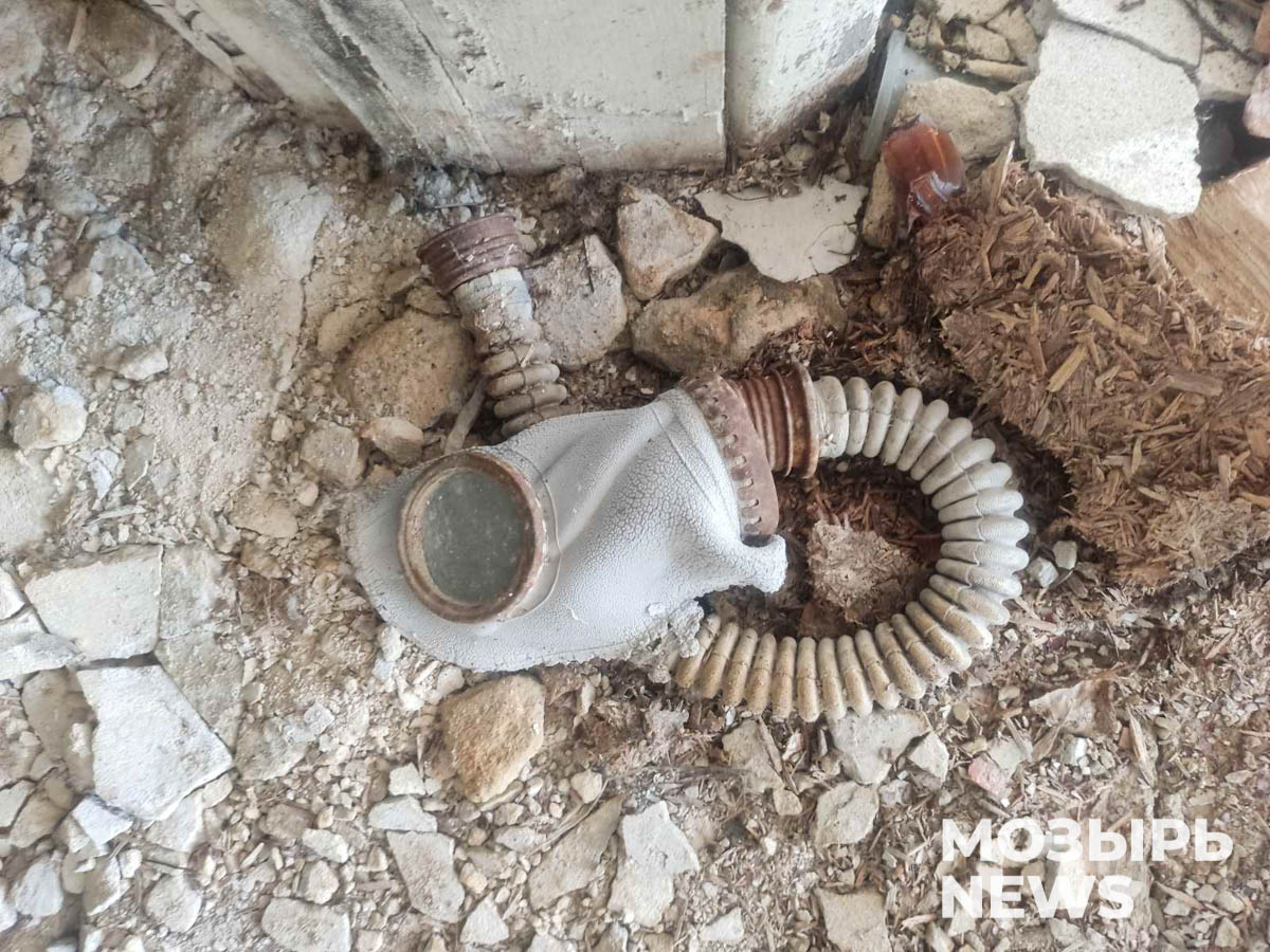 В классах на сохранившихся партах и сейчас лежат учебники, за учительским столом – указка, впереди – запыленная классная доска, на стенах – портреты писателей, плакаты… А на полу – противогазы.