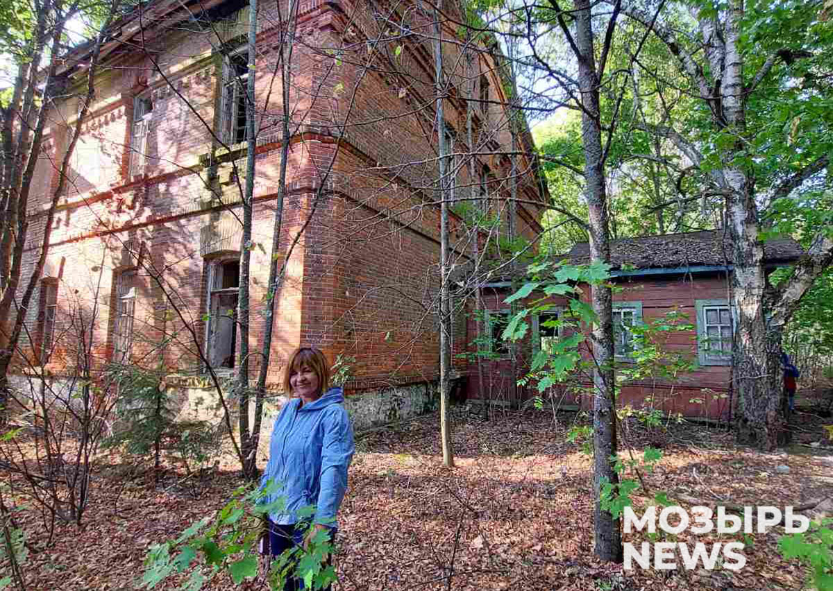 Сохранилось здание большой средней школы. Когда начали прогуливаться по этажам, сразу обратила внимание, в каком красивом месте она расположена. С одной стороны лес, с другой – залитый солнцем луг, а за ним – холмы. Кстати, на этих холмах-дюнах снимали отдельные сцены фильма про партизан «Иди и смотри».
