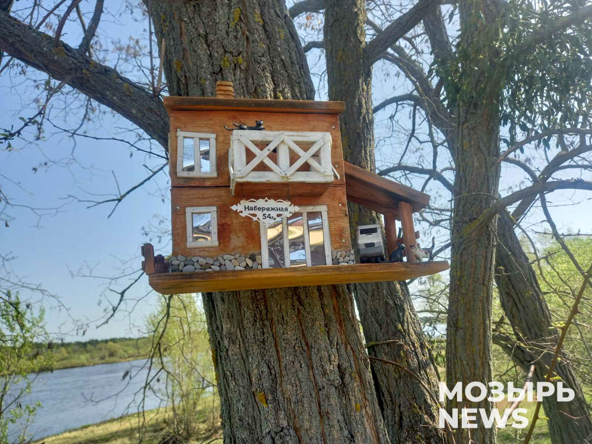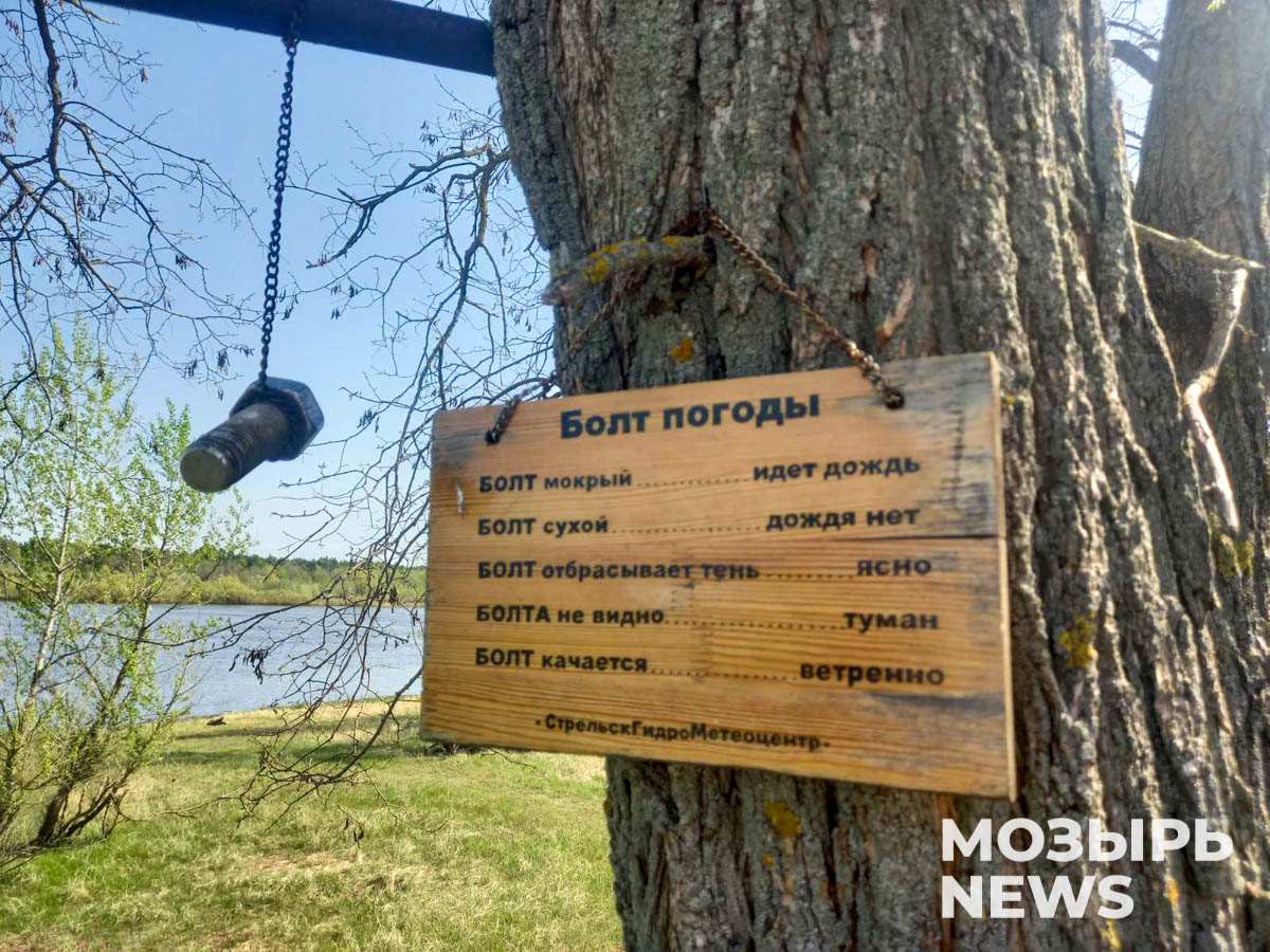 Леонид Дикан своими силами забетонировал ступеньки на лестнице, ведущей к берегу Припяти, соорудил и установил скамейку, а еще обустроил шуточный стрельский метеопункт – теперь сельчане без труда смогут определить погоду, всего лишь взглянув на висящий на ветке дерева болт.