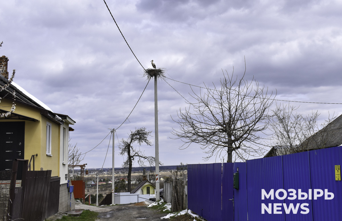 По словам местных жителей, аист усердно строил жилье в течение недели, но потом куда-то пропал. Может, нашел более престижный район или взял подряд на строительство гнезд и полетел на новый объект? Но сегодня аист вернулся!