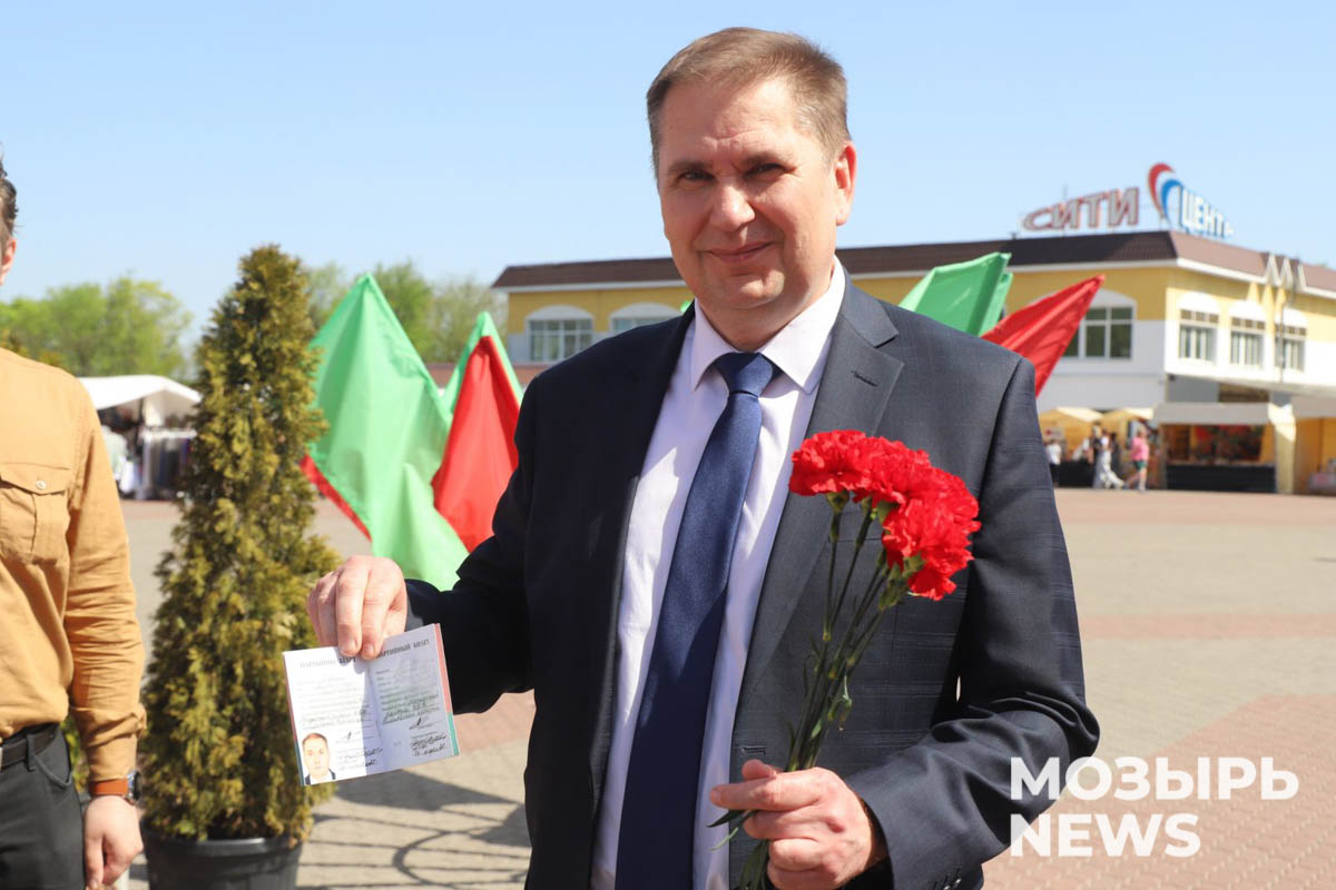 После состоялось вручение партийных билетов новым членам Мозырской районной партийной организации КПБ Беларуси. Завершилась встреча возложением цветов к памятнику В. И. Ленина.