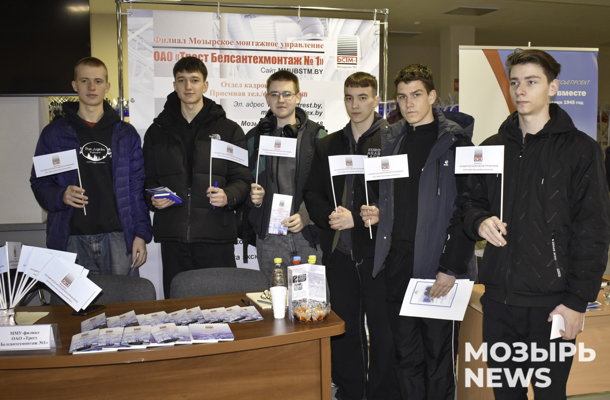 В фойе ФОЦ «Арена» сегодня собрались школьники выпускных классов Мозыря, учащиеся профессиональных колледжей и студенты педуниверситета — здесь на ярмарке вакансий развернули свои стенды и экспозиции все строительные организации Мозырского района.