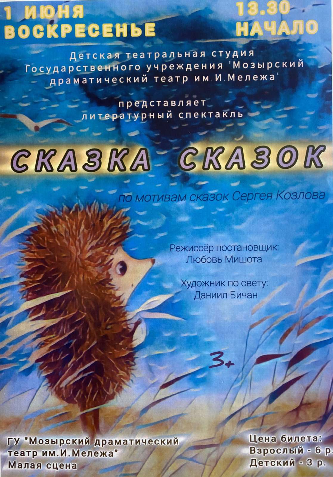 Ко Дню защиты детей в Мозырском драматическом театре им. И. Мележа на малой сцене покажут «Сказку сказок» по мотивам произведений Сергея Козлова и литературный спектакль «Шесть тысяч поездов» в постановке режиссера детской театральной студии Любови Мишота.Детство должно быть счастливым, ярким и просто сказочным – об этом, конечно, знают все родители, которые ответственно воспитывают своих детей и проводят с ними много времени, в том числе и в нашем замечательном театре. Сказки Сергея Козлова – трогательные произведения, которые с удовольствием смотрят не только дети. Сказочные герои знакомят зрителей со своими приключениями, открытиями, удачами и надеждами.
