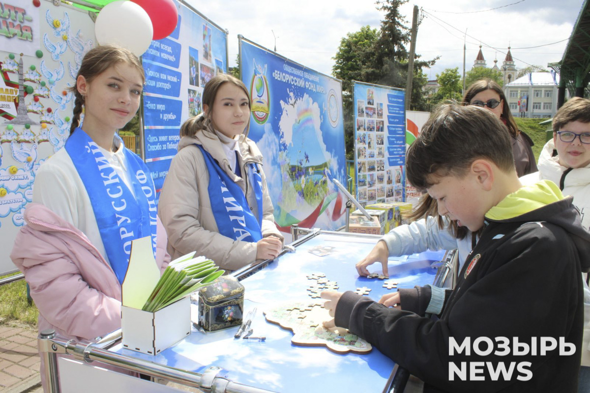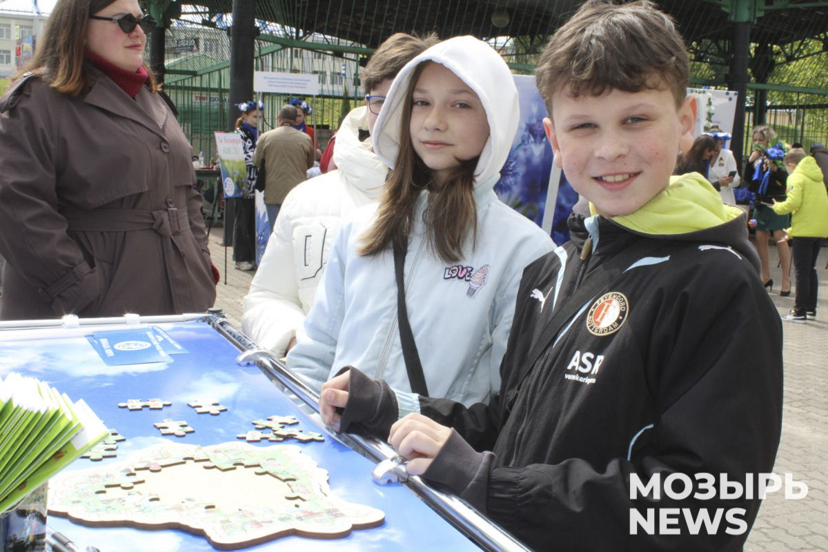 На набережной реки Припять масштабно презентуют свое творчество учреждения образования Мозырщины. Ребята и педагоги, объединив усилия, создали уникальные проекты, игры, стенды и плакаты, делясь наработками с гостями парка в этот праздничный день.