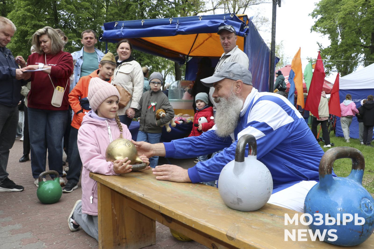 «Наша задача — заниматься популяризацией гиревого спорта, — отметил мастер спорта международного класса Республики Беларусь, рекордсмен книги рекордов Гиннесса, член Белорусского Союза офицеров Сергей Дорошко. — Сегодня мы также представляем силовое шоу, которое вызывает у мозырян большой интерес. Участвуют в нем, как мальчики и девочки от 6 лет и старше, так и пенсионеры. От всего сердца поздравляю жителей нашего района с юбилеем Великой Победы, желаю всем крепкого здоровья и мирного неба над головой!»
