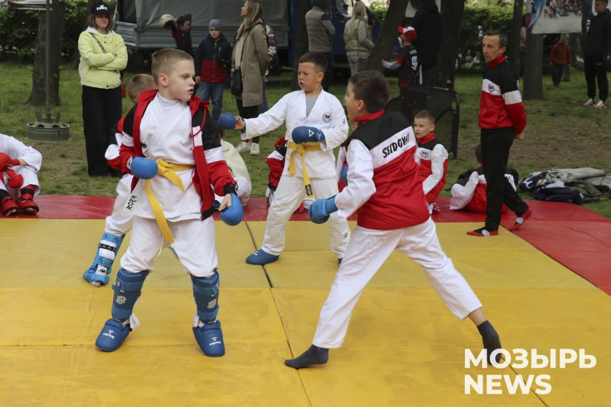 Ребята с удовольствием играли в мини-футбол, бадминтон, баскетбол и соревновались в перетягивании каната. Руководители спортивных школ Мозырского района организовали показательные выступления юных каратистов, велосипедистов и других спортсменов.