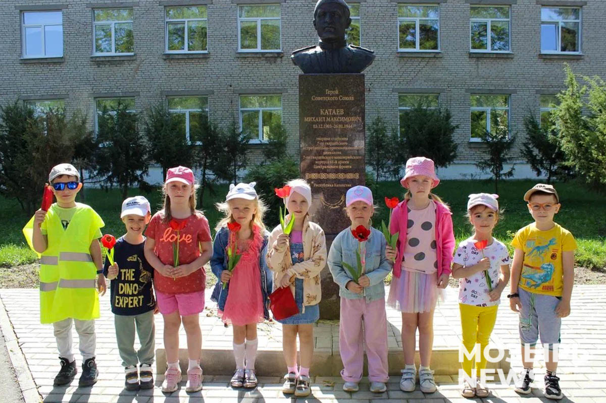 После наведения порядка ребята торжественно возложили цветы к подножию памятника и посетили еще одно знаковое место – памятник-бюст на территории средней школы № 8. Дошкольники узнали, что он воздвигнут в честь Героя Советского Союза М. М. Катаева, уроженца Республики Казахстан, который храбро сражался и погиб при освобождении Мозыря.