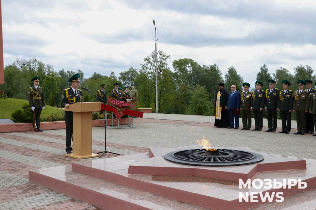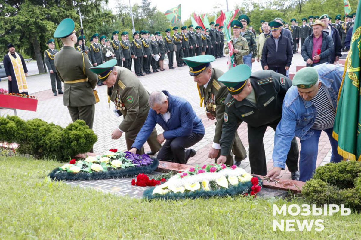 Торжественное мероприятие ко Дню пограничника по традиции состоялось на Кургане Славы. В нем приняли участие командование, офицеры управления и личный состав Мозырского погранотряда, члены ветеранских организаций, учащиеся военно-патриотических классов СШ №№ 8 и 11.