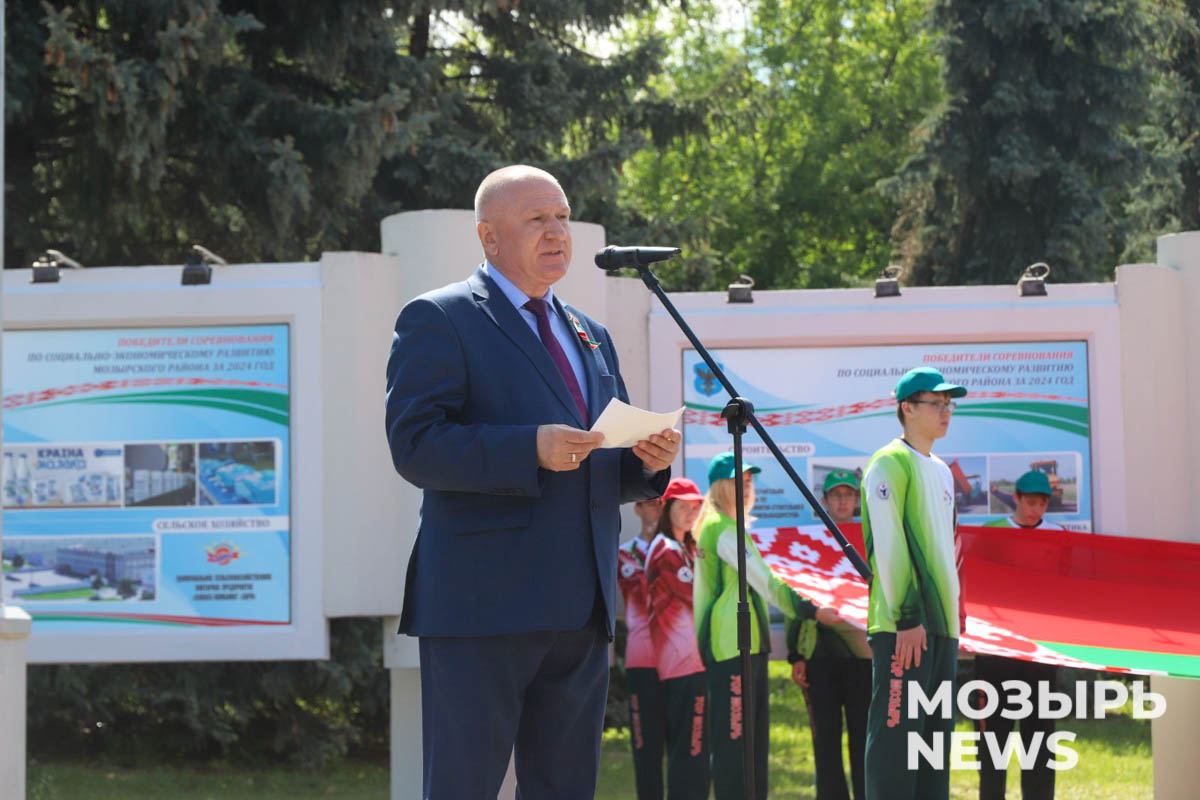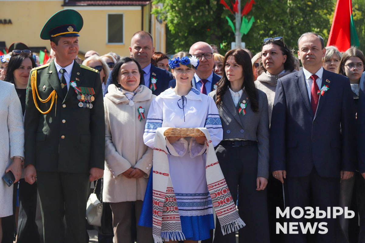 С приветственной речью перед собравшимися выступил заместитель председателя Мозырского районного исполнительного комитета Феликс Галюк. Он сердечно поздравил мозырян с этим праздником, отметив, что в государственных символах Республики Беларусь отражен весь долгий путь белорусского народа к независимости.