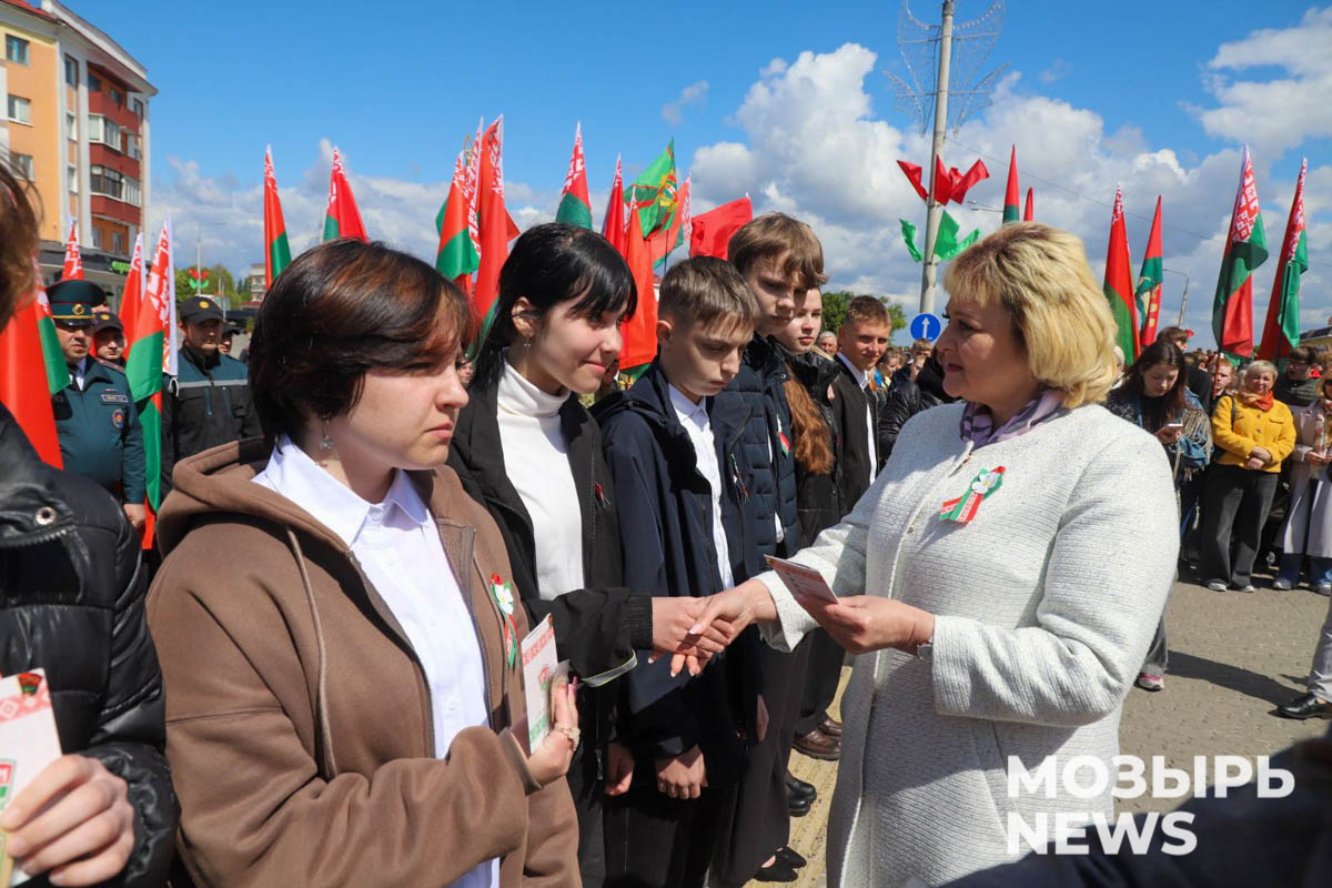 Белорусский республиканский союз молодежи также пополнился: 8 юных мозырян, учащихся учреждений образования города, стали полноправными членами молодежной организации. Право повязать галстуки и вручить значки и членские билеты было предоставлено депутату Палаты представителей Национального собрания Республики Беларусь Оксане Ковальковой, заместителю председателя Мозырского райисполкома Феликсу Галюку и первому секретарю РК ОО БРСМ Веронике Павловой.