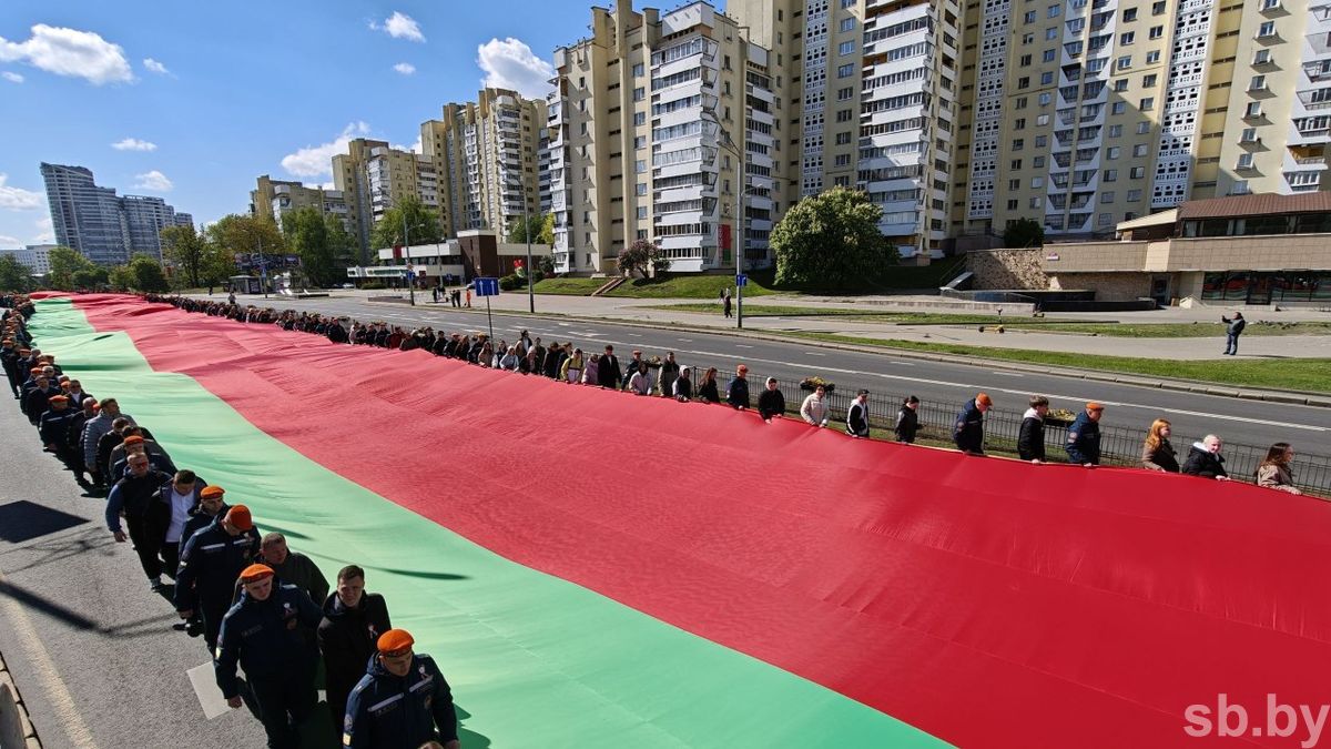 В рамках чествования государственных символов сегодня на улицах столицы развернулось впечатляющее полотно Государственного флага Республики Беларусь длиной 500 метров. Его пронесли по проспекту Победителей представители республиканских общественных организаций, Федерации профсоюзов Беларуси. Все они пришли с одной целью: выразить свою поддержку государственным символам, которые олицетворяют нашу идентичность.
