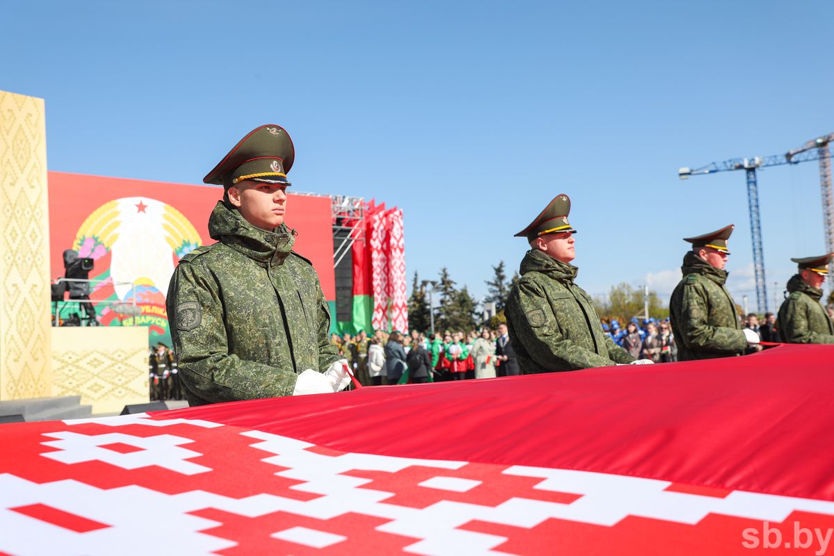 В Минске на площади Государственного флага прошол торжественный ритуал чествования государственных символов, посвященный празднованию Дня Государственного флага, Государственного герба и Государственного гимна Республики Беларусь, пишет SB.BY