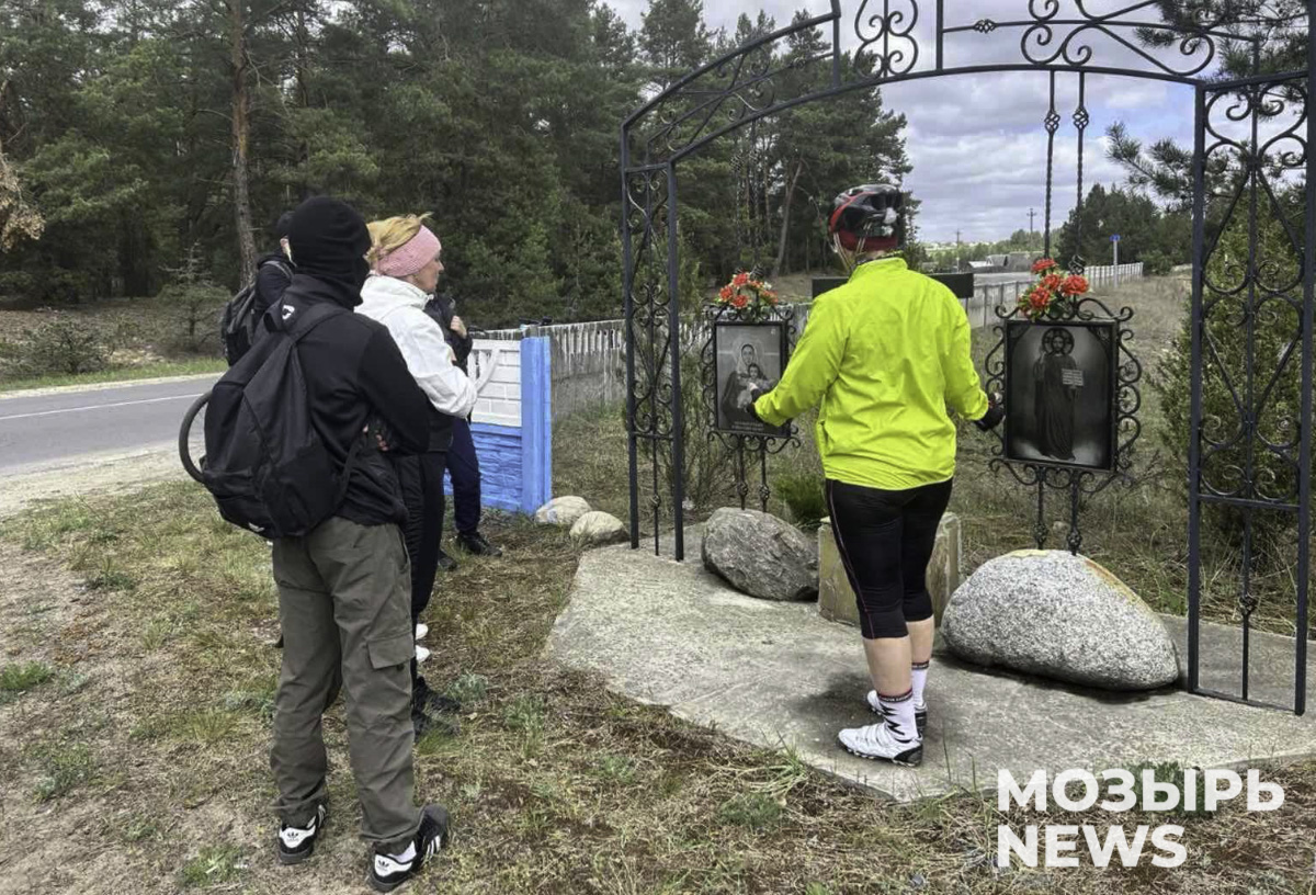В деревне Мерабель велотуристы остановились у Арки памяти неизвестному солдату, погибшему во время сражений Великой Отечественной войны.