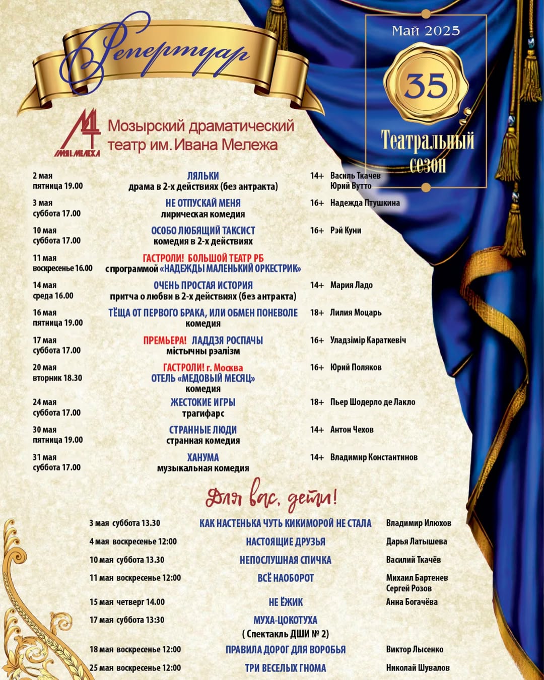 Расписание спектаклей в мозырском драмтеатре: репертуар на май