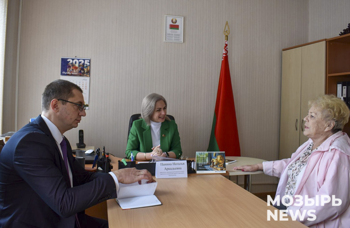 В ходе запланированной поездки заместитель главы ведомства Наталья Панина провела прием граждан по личным вопросам на базе территориального центра социального обслуживания населения Мозырского района, пообщалась с работающим здесь коллективом, а также приняла участие в чествовании начальника управления по труду, занятости и соцзащите Мозырского райисполкома Михаила Пашинского по случаю его ухода на заслуженный отдых.
