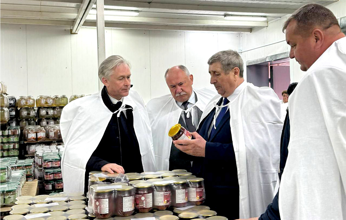 Председатель Постоянной комиссии Совета Республики Национального собрания Республики Беларусь по законодательству и государственному строительству побывал на экспериментальной базе «Криничная», где ознакомился с продукцией, выпускаемой в консервном цеху, отметив её высокое качество.