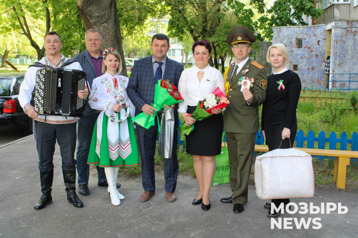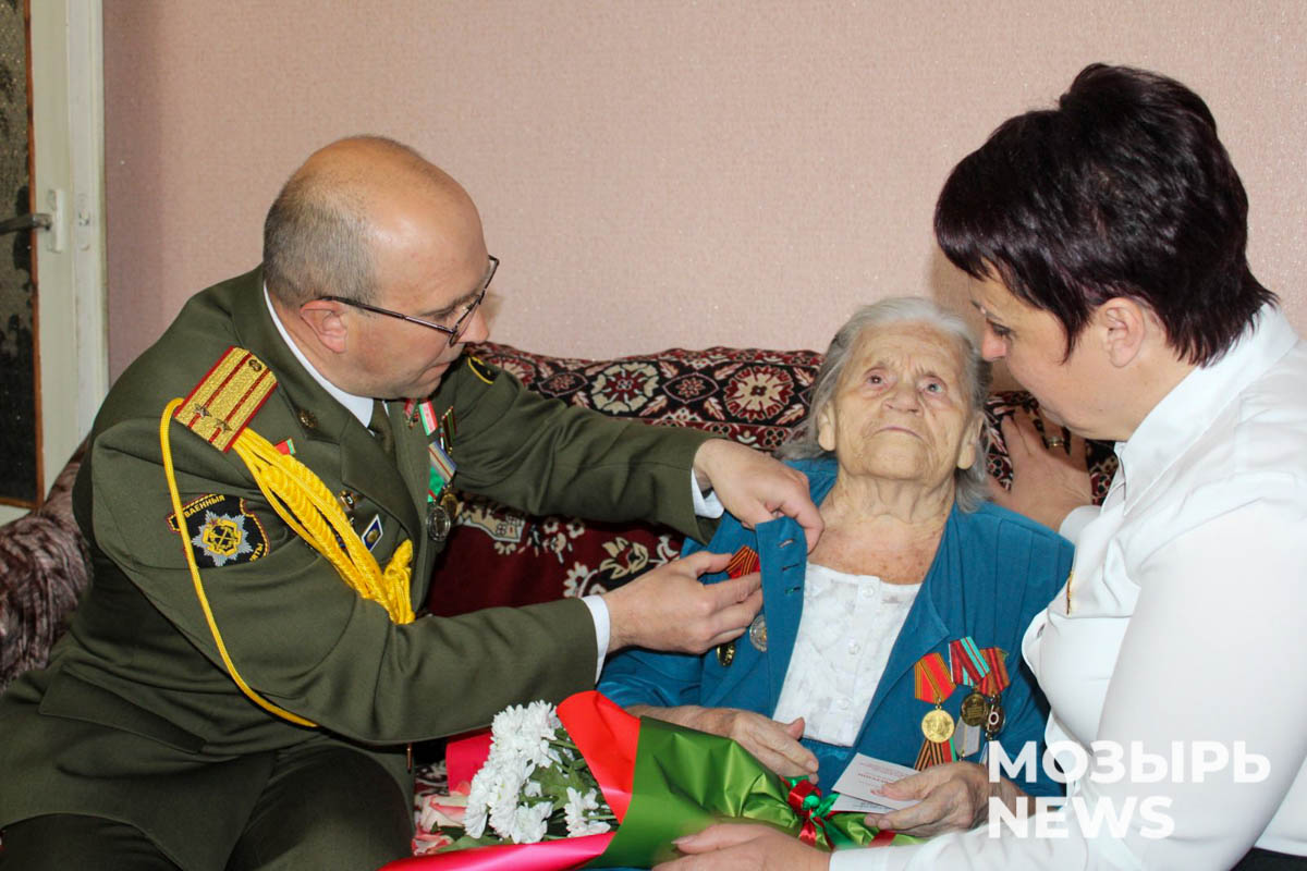 Поздравить с праздником Великой Победы в гости к Анне Федоровне Лаврук пришли депутат Палаты представителей Национального собрания Республики Беларусь Алла Науменко, начальник группы территориальной обороны Мозырского района подполковник Николай Захаренко, главный инженер УП «Запад-Транснефтепродукт» Олег Гостюхин, заместитель директора ТЦСОН Мозырского района Алла Гришковец.