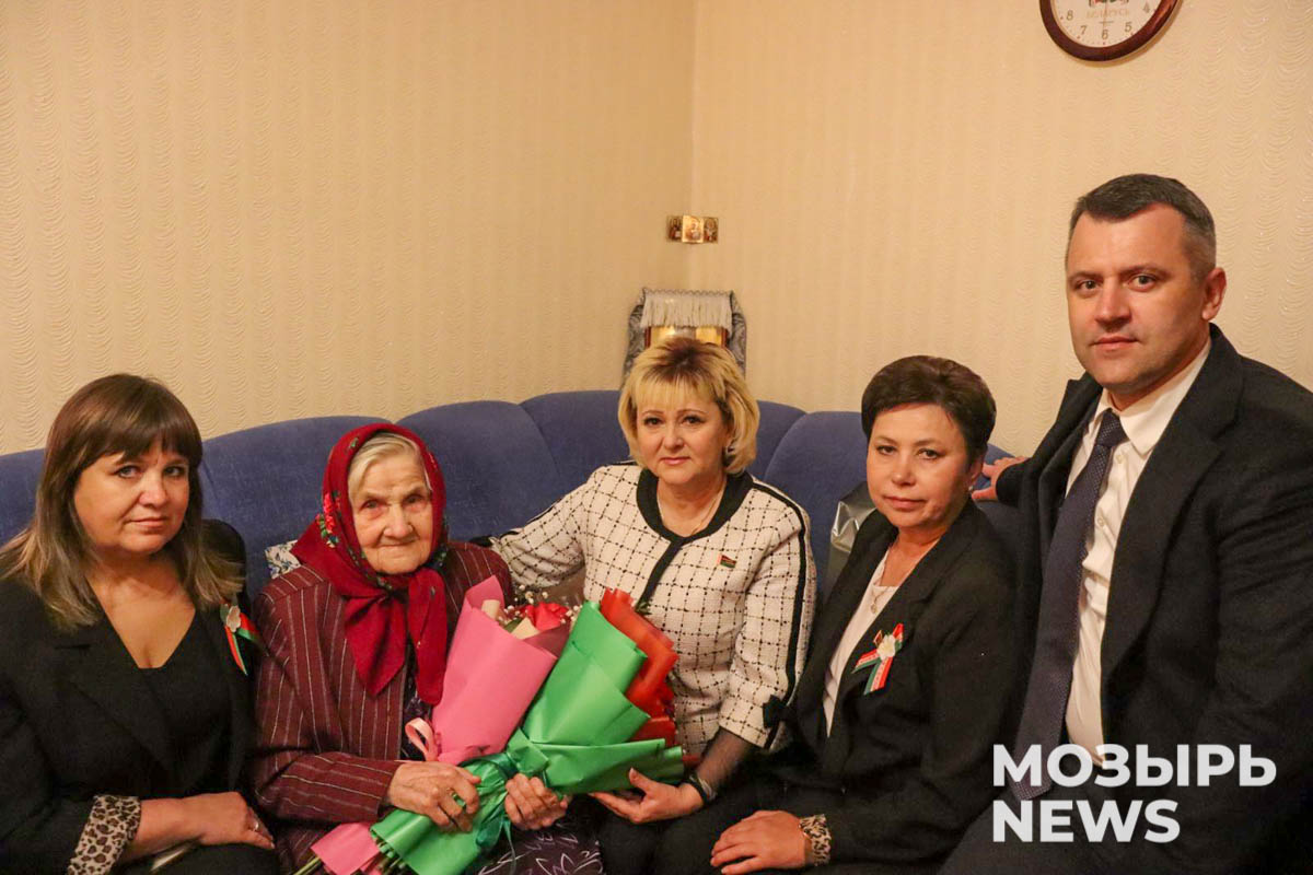 Поздравить ветерана пришли депутат Палаты представителей Национального собрания Республики Беларусь Оксана Ковалькова, заместитель начальника управления по труду, занятости и социальной защите Мозырского райисполкома Ирина Соловей, заместитель военного комиссара – начальник мобилизационного отдела подполковник Сергей Казючиц, генеральный директор ОАО «Мозырский домостроительный комбинат» Людмила Машкова, ведущий инженер ЖЭУ № 1 Виталий Павловский, заместитель генерального директора по строительству унитарного производственного предприятия «Запад-Транснефтепродукт» Александр Коневега, заведующий филиалом «Лучежевичский сельский дом культуры» Зоя Мартынюк.