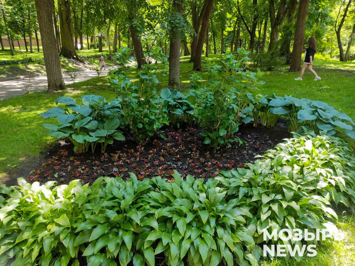 Поблизости находится одна из разновидностей пробкового дерева, рядом – искусственная сакура и цветущая липа. Возле дворца – дуб, который посадили еще при Паскевичах и которому больше 200 лет. Есть целая аллея кленов-леопольдиев. Их листики похожи на фикус Бенджамина. И боярышник еще только-только начинает цвести. Много клумб с цветами, заботливо спрятанных под тенью огромных лиственных. По дороге к Лебяжьему пруду растут кусты вечнозеленого самшита. Рядом – можжевельники, розы.