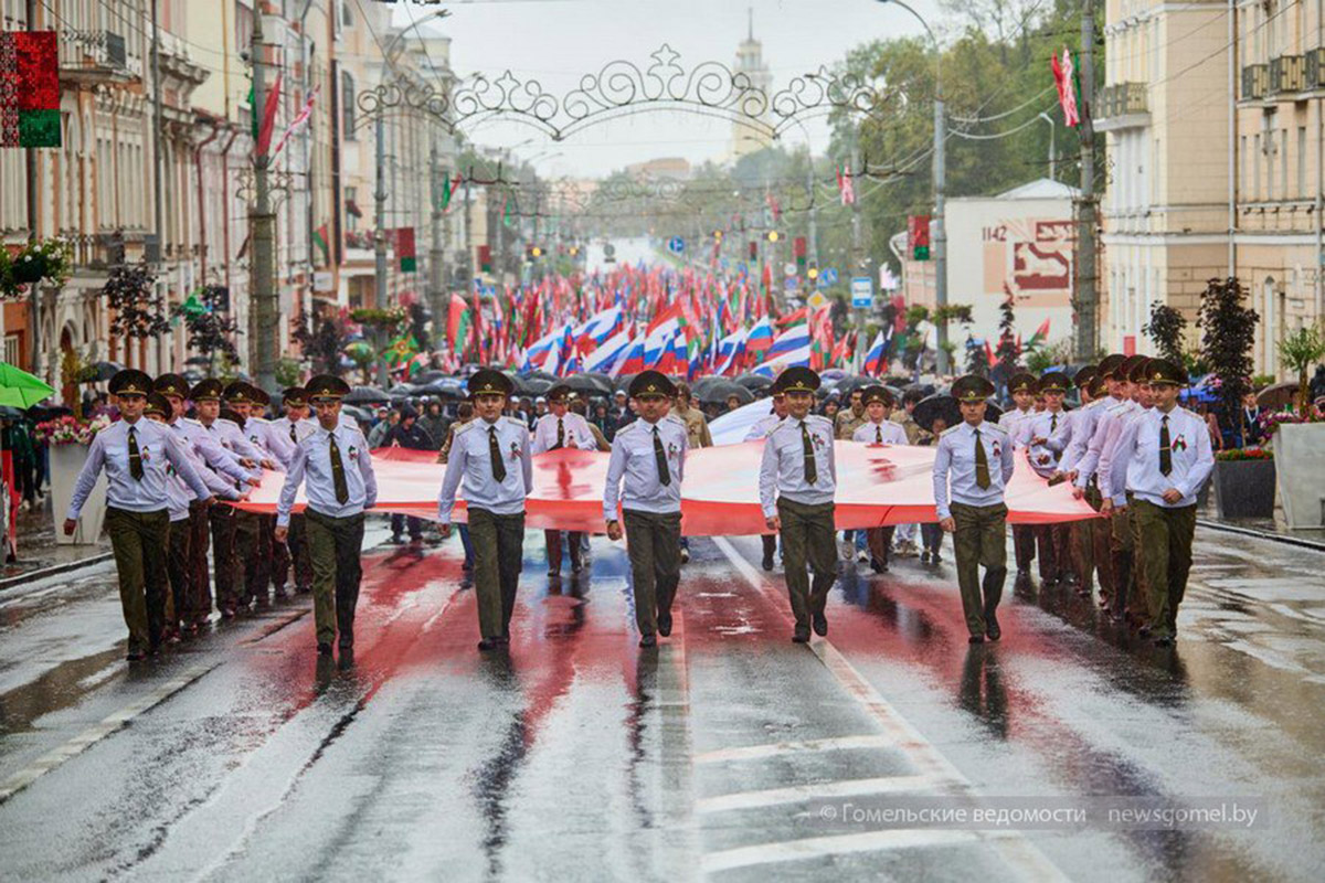 Фестиваль «Славянское единство – 2025» объединил в Гомеле представителей Беларуси и России. Торжественное шествие по улице Советской стало прологом насыщенной культурной программы: в колонне прошли официальные делегации Гомельской и Брянской областей, представители трудовых коллективов, общественных организаций и молодежных объединений.