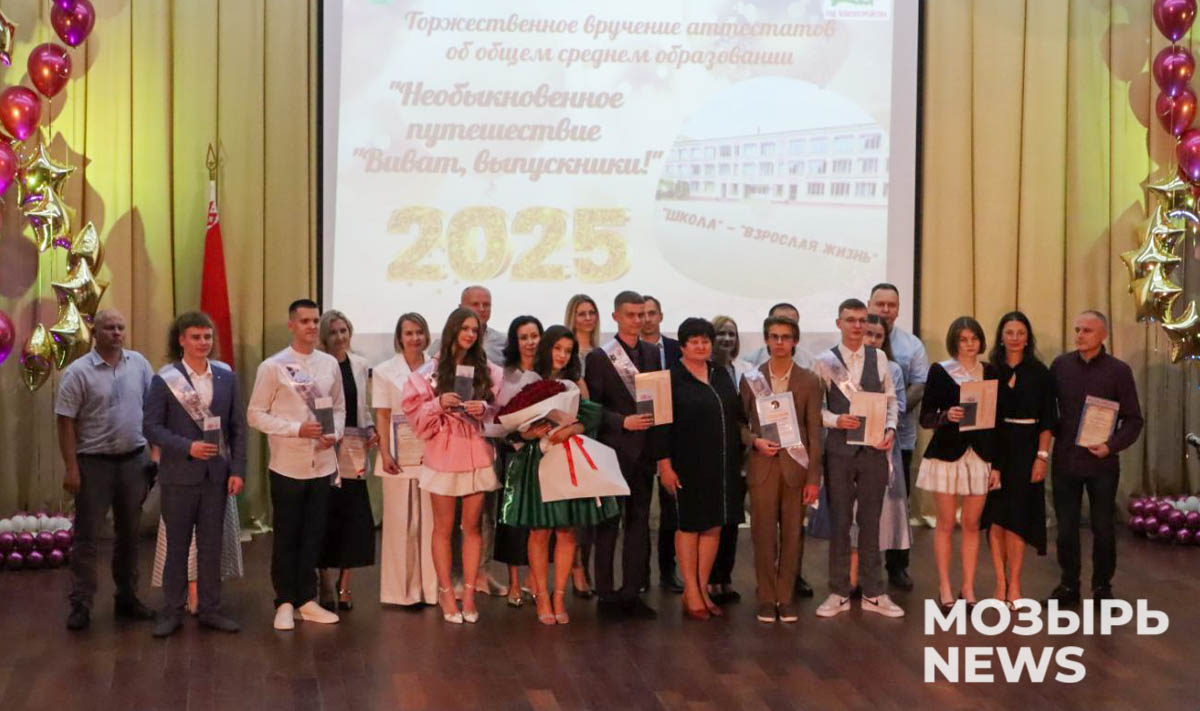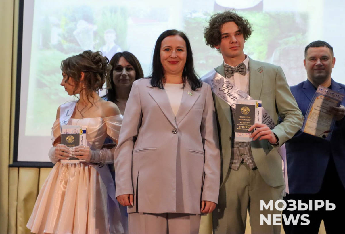 В Мозырском государственном музыкальном колледже царит особенная атмосфера: десятки нарядных и счастливых подростков, светящиеся улыбками педагоги и родители, стилизованные фотозоны — все говорит о том, что здесь сегодня прощаются с детством и получают аттестаты зрелости.