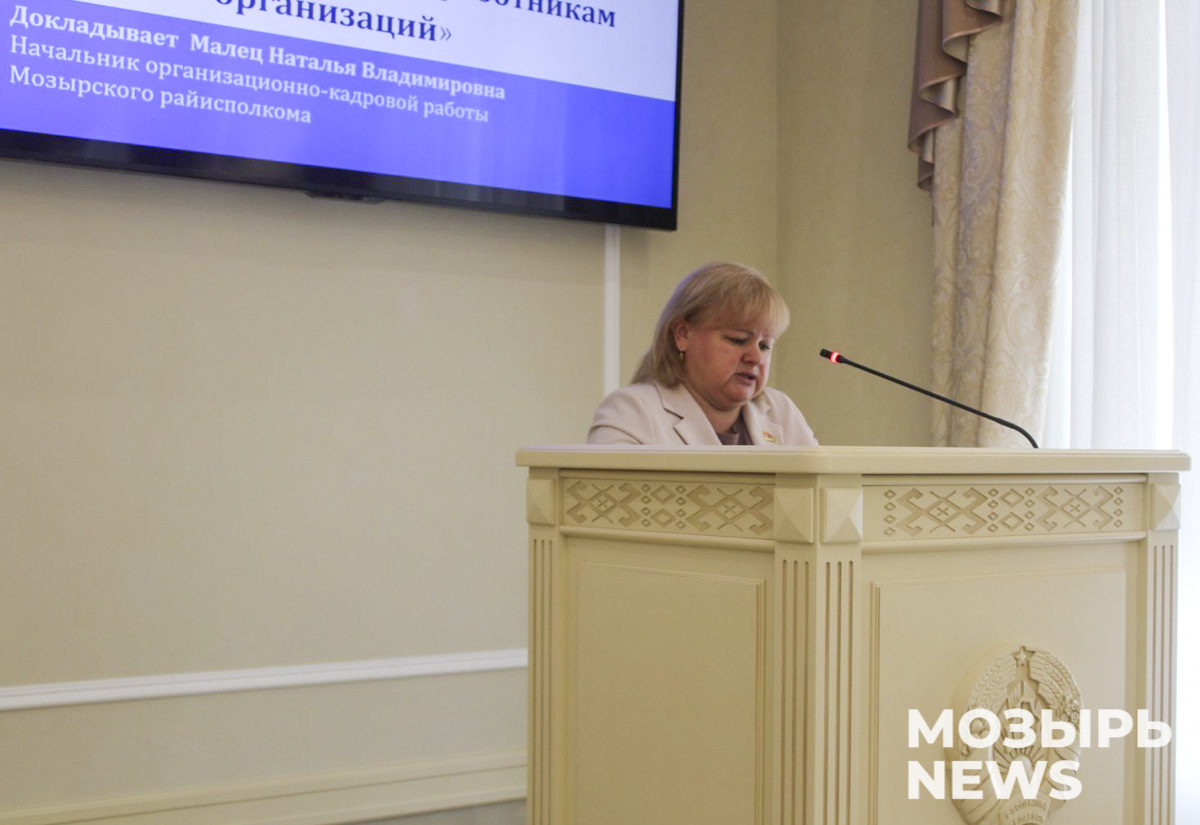Начальник организационно-кадровой работы Мозырского райисполкома Наталья Малец напомнила руководителям предприятий основные положения Декрета № 5 от 15 декабря 2014 года «Об усилении требования к руководящим кадрам и работникам организаций».
