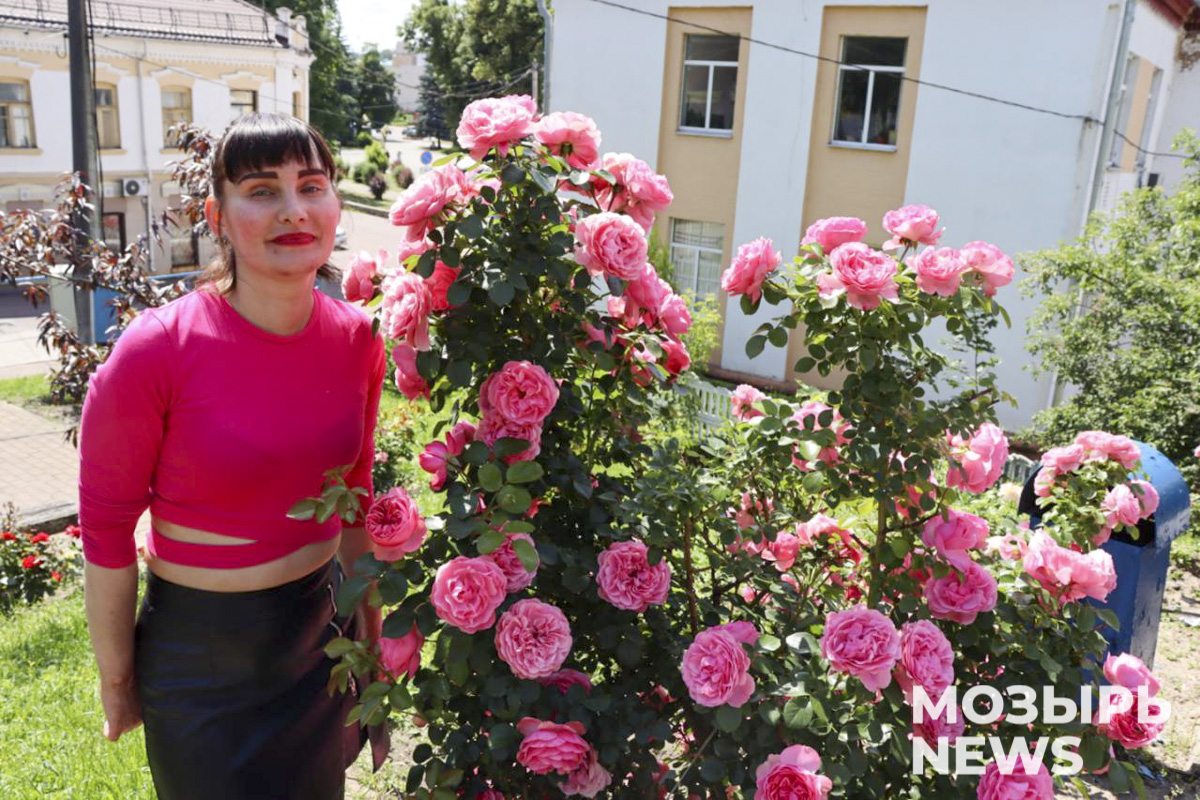 Швея Мозырской фабрики художественных изделий Ольга Чистякова живет и работает неподалеку. У девушки нет своего земельного участка, розы она не выращивает, зато сюда приходит отдохнуть и насладиться окружающим великолепием. Кстати, Ольга отметила, что розы пахнут медом.