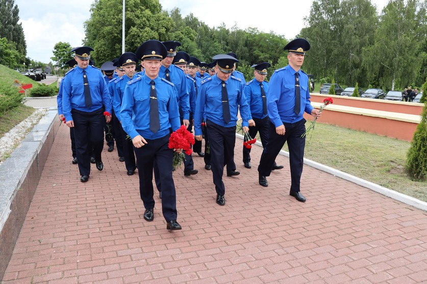В рамках рабочей поездки в Мозырь участники совещания посетили мемориальный комплекс «Курган Славы», возведенный на месте кровопролитных боев за освобождение города от немецко-фашистских захватчиков. Знаковый исторический объект включает в себя 45-метровую стелу, установленную на высотном кубе гаубицу, братскую могилу солдат и партизан, памятник блокадникам Ленинграда. Офицеры возложили цветы к подножию монумента, ознакомились с образцами военной техники времен Великой Отечественной войны.