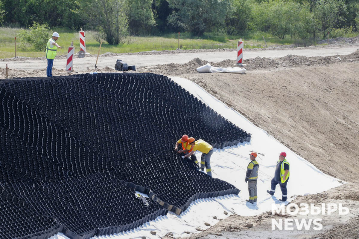 …Мы были на объекте в последний раз в середине мая. Можно констатировать: все, что намечалось в те дни, выполнено или выполняется. Идет устройство рулонной гидроизоляции, устанавливаются бордюры, монтируются опоры ограждения тротуаров, уложен первый слой асфальтобетонного покрытия. В скором времени на подмогу брестским и гомельским строителям мозырского моста прибудут гродненские специалисты.