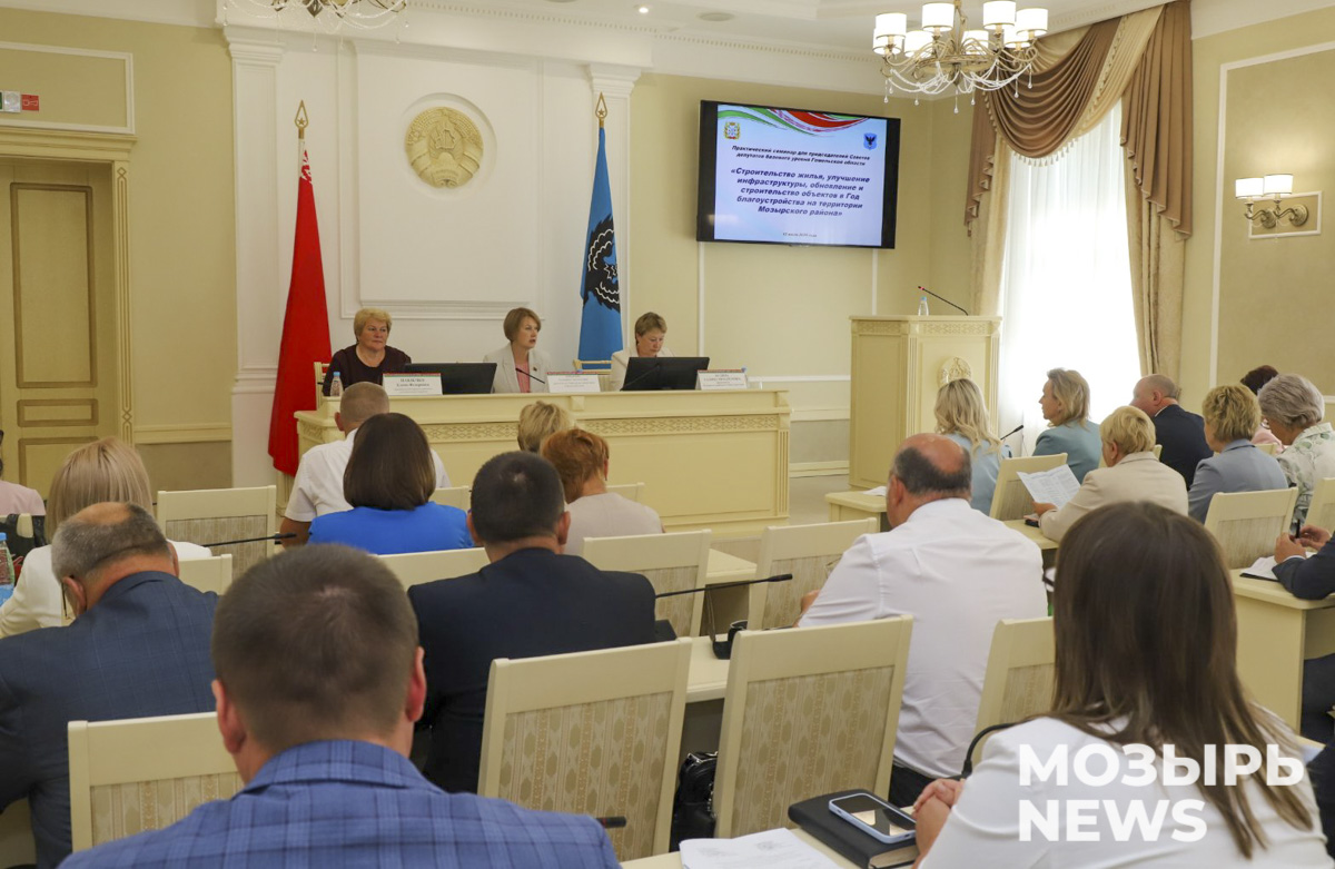 В Мозыре проходит практический семинар для председателей Советов депутатов базового уровня Гомельской области на тему: «Строительство жилья, улучшение инфраструктуры, обновление и строительство объектов в Год благоустройства на территории Мозырского района». Участниками мероприятия стали председатели Гомельского городского и районных Советов депутатов Гомельской области.