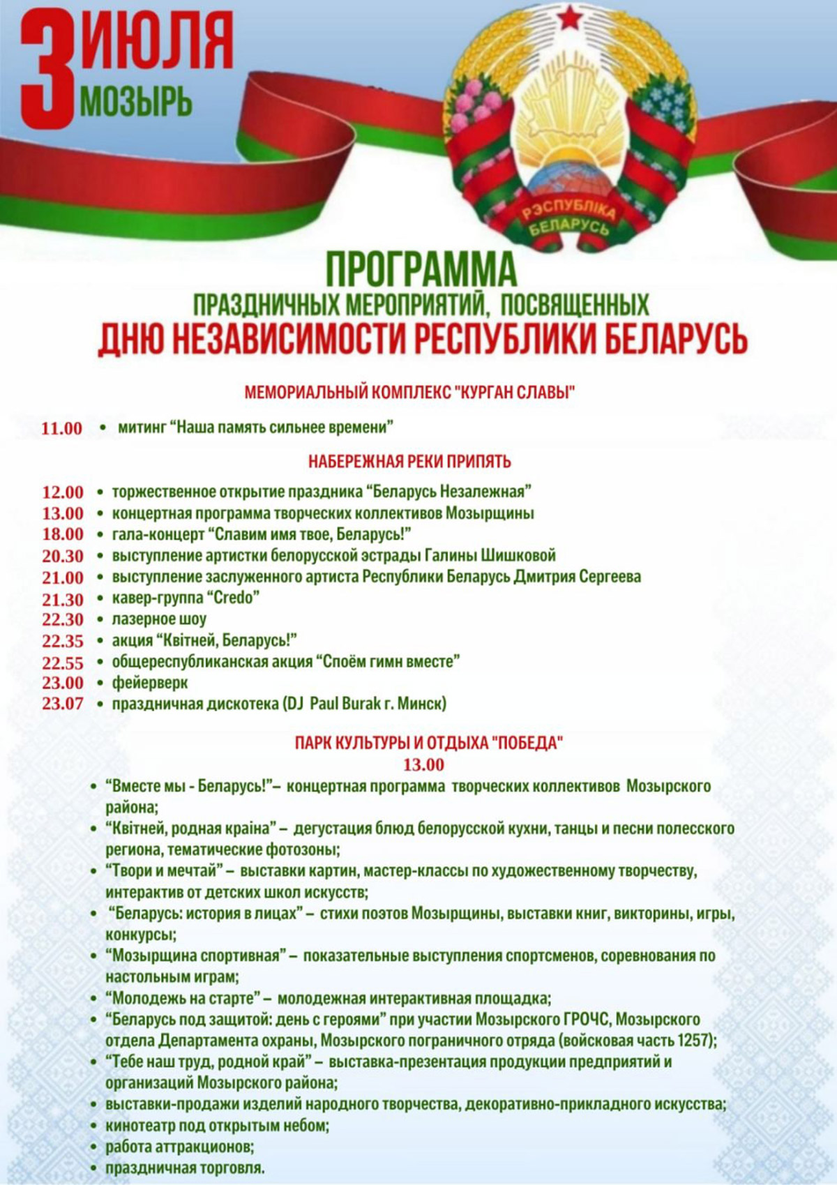 Как Мозырь будет отмечать День Независимости: афиша праздника