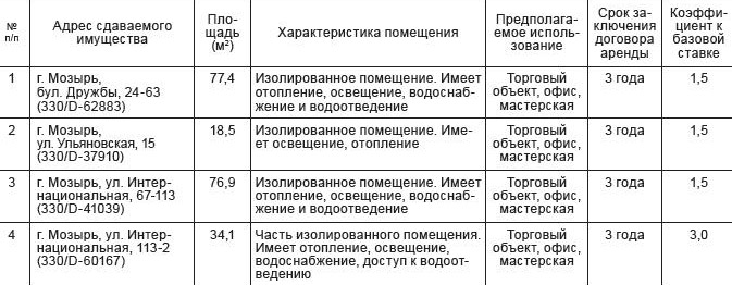 Государственное предприятие «Мозырский райжилкомхоз» извещает об открытом аукционе по продаже права на заключение договора аренды на объекты недвижимости районной коммунальной собственности.