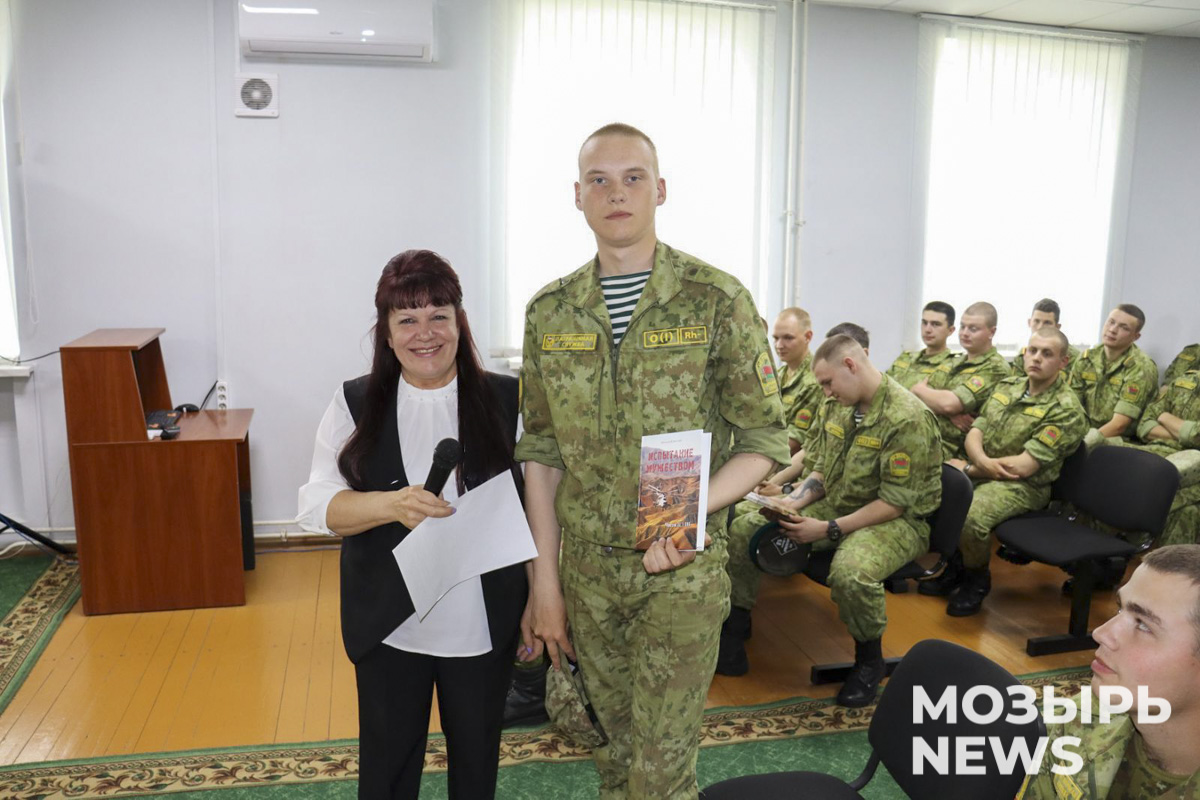 Наряду с другими темами, через творчество писателя-публициста и журналиста (член Союза журналистов Республики Беларусь) Натальи Коноплич красной нитью проходит тема афганской войны, где главными героями являются воины-интернационалисты – уроженцы Мозырщины, которым выпало исполнять воинский долг на афганской земле. Писатель рассказала молодому поколению пограничников о профессиональной и творческой деятельности, отметив важность патриотического воспитания на примерах старших поколений, и поделилась планами на перспективу.