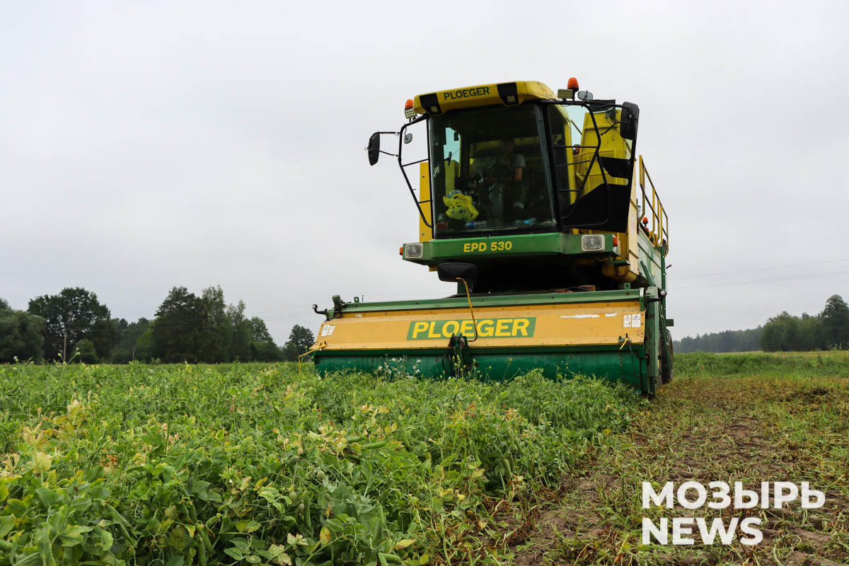 Едем в Белую. Вдалеке виднеется зеленый горохоуборочный комбайн. Тракторист-машинист Владимир Абрамчук – в ожидании, когда можно будет приступить к уборке. Нынешний сезон для него четвертый с момента присоединения ельского консервного завода и начала возделывания зеленого горошка.
