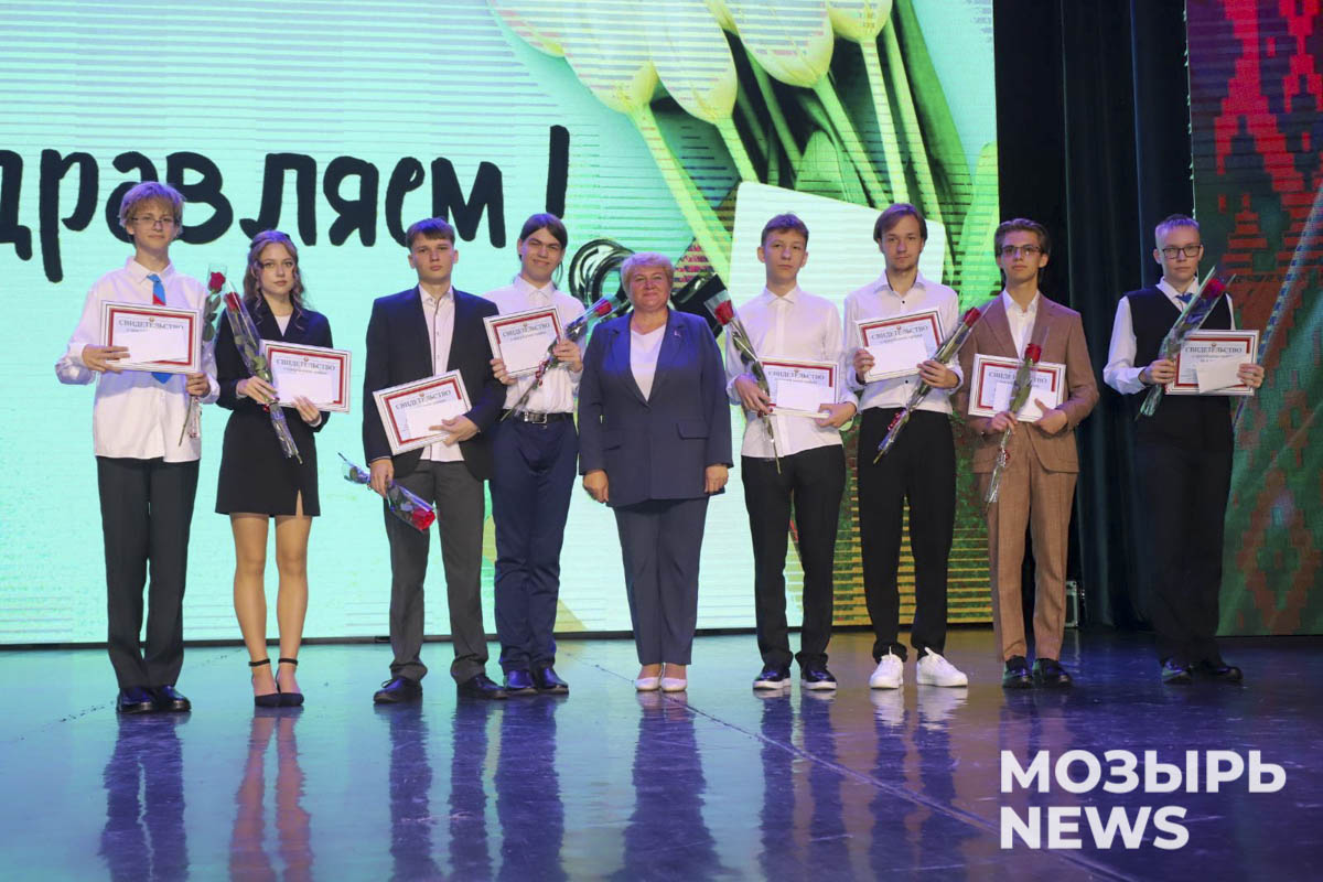 Вслед за талантливыми педагогами на сцену поднялись не менее талантливые мозырские умницы и умники – победители заключительного этапа республиканской олимпиады: Ярослав Паршин, Матвей Андриалович, Иван Кошман, Алексей Сузько, Николай Гурин, Максим Москвин, Валерия Гуд, Кирилл Шаладонов. Награды получили и подготовившие победителей педагоги – Галина Кебец, Инна Шурпач, Светлана Щипер, Анна Грамович, Светлана Васькова, Инга Дулуб, Алексей Борунов, Елена Андриалович и Татьяна Чернова.